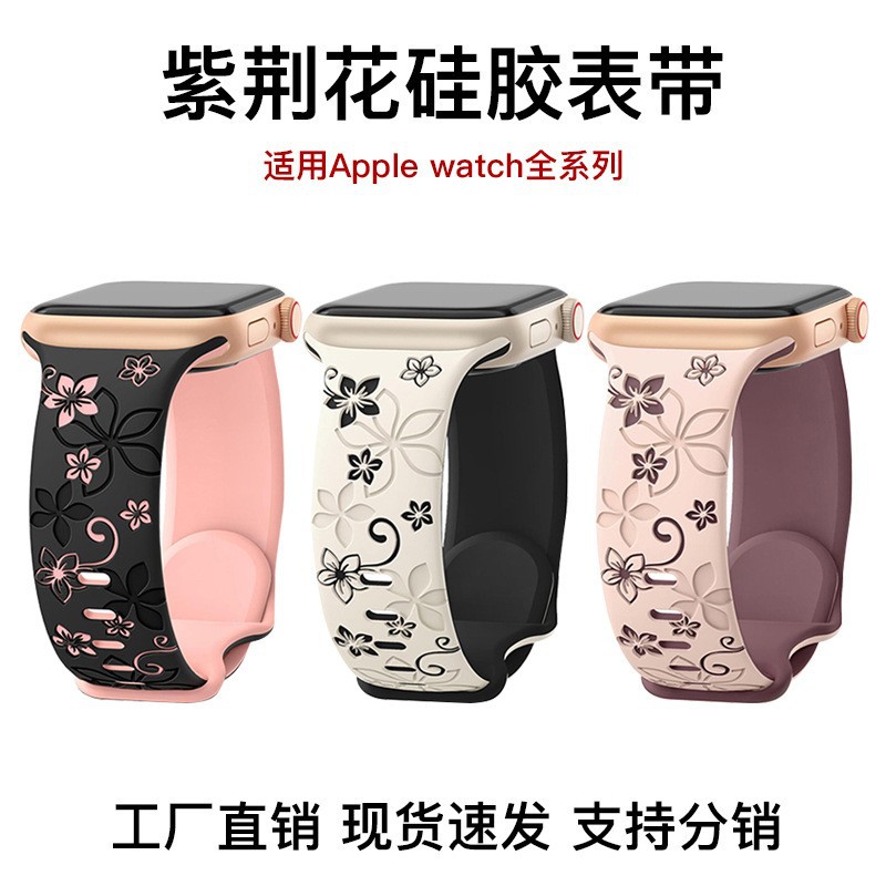 アップルiWatch花卉紫荊花ラジウム彫刻シリカゲルバンドwatch立体彫刻腕時計バンドを適用します。