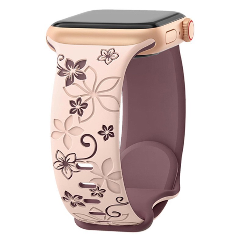 Applewatch10ultra1/2 シリコン 2 色ストラップに適しています。レーザー彫刻されたバウヒニアの花のテクスチャの時計ストラップ