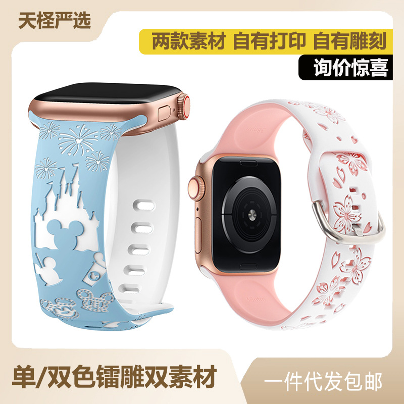 アップルのwatch蝶ボタンに適した2色の彫刻シリコンバンドiwatchエンボス彫刻