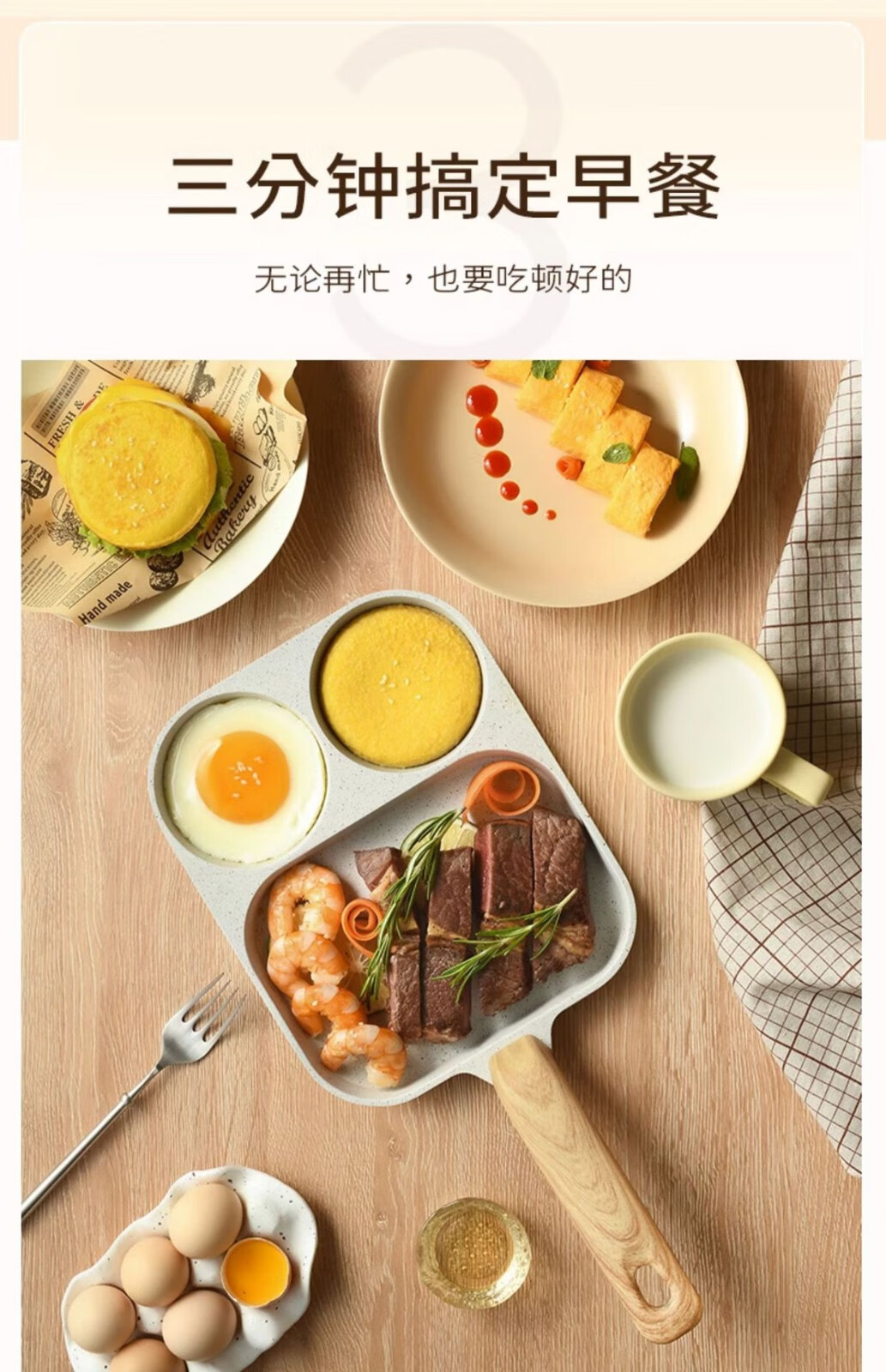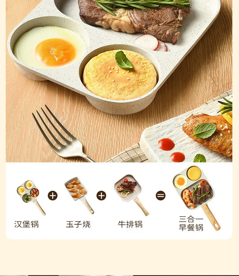 三合一早餐锅平底煎锅鸡蛋汉堡锅家用煎饼煎蛋不粘锅牛排煎锅