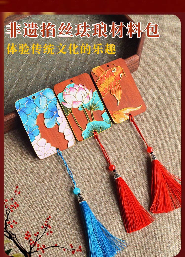 景泰蓝非遗掐丝珐琅书签diy手工制作材料包套装新手入门古风梨花