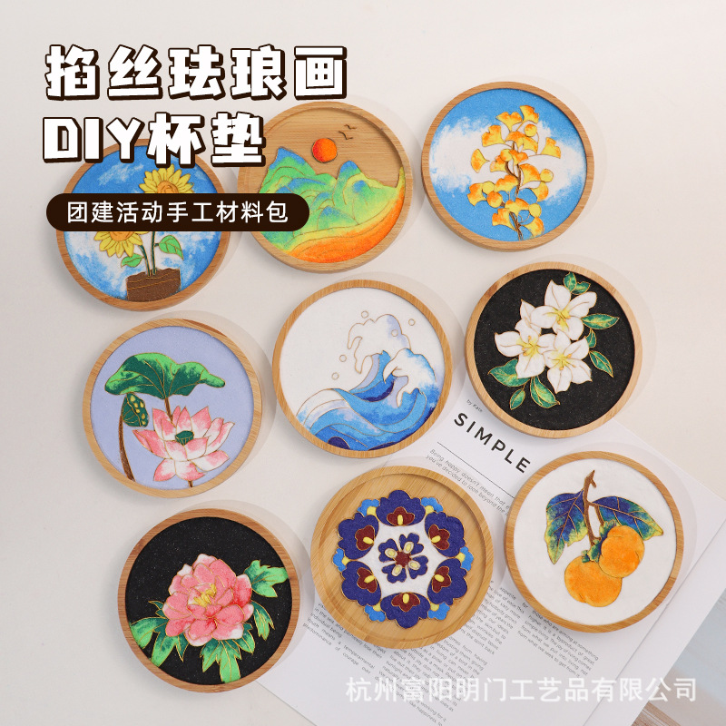 掐丝珐琅画杯垫diy景泰蓝新手入门级手工材料包团建感恩节日活动
