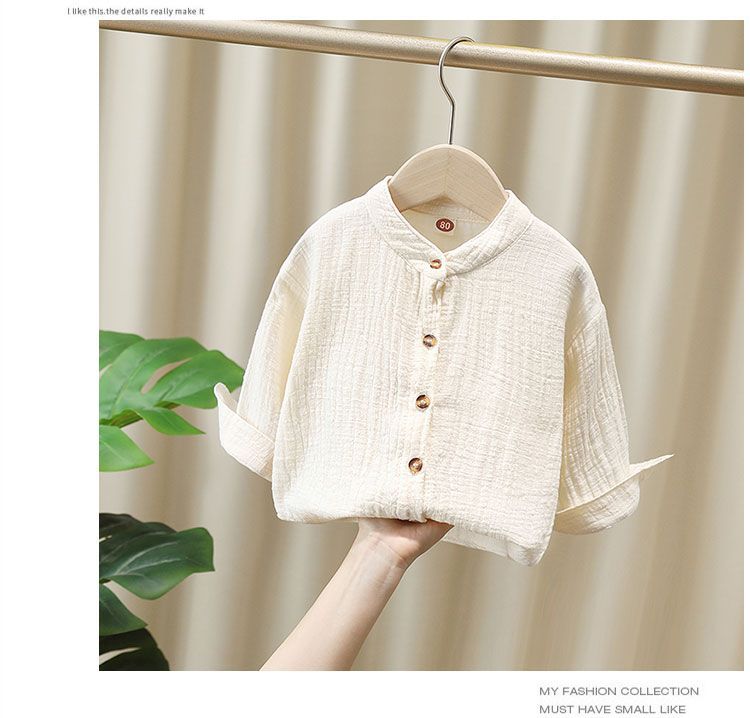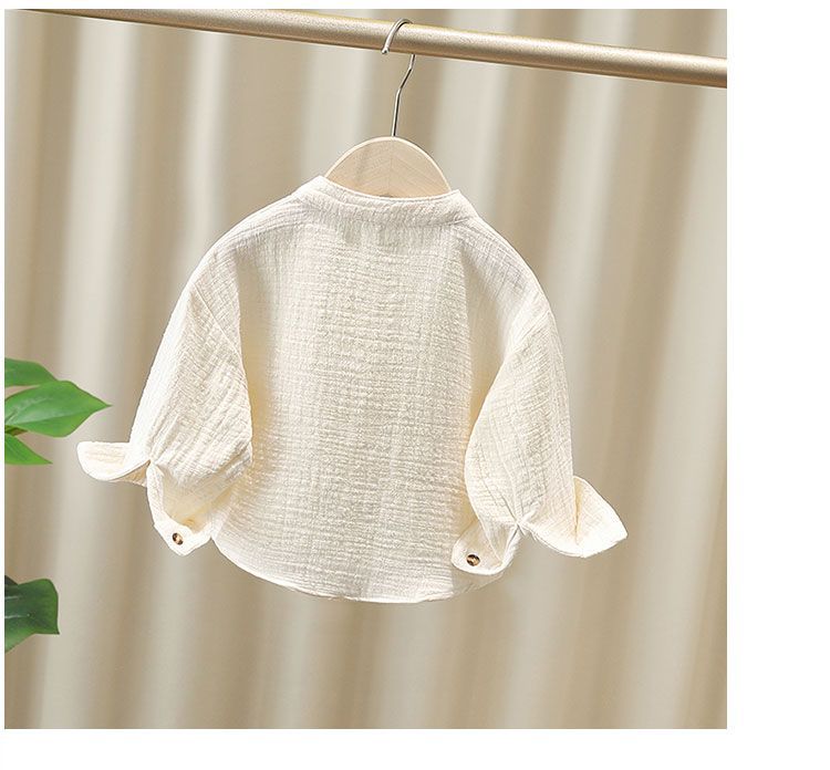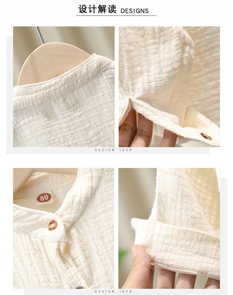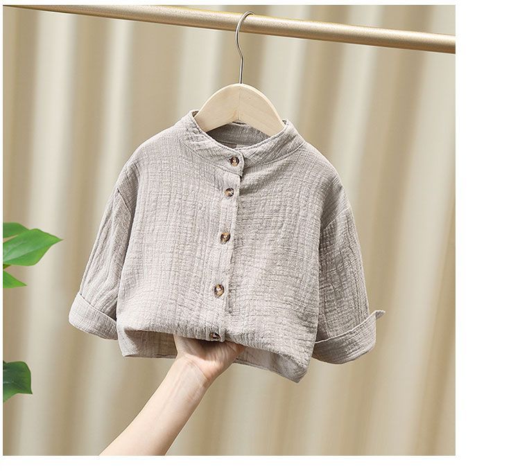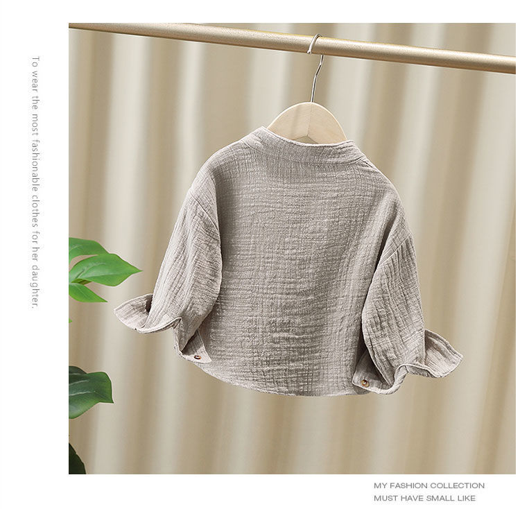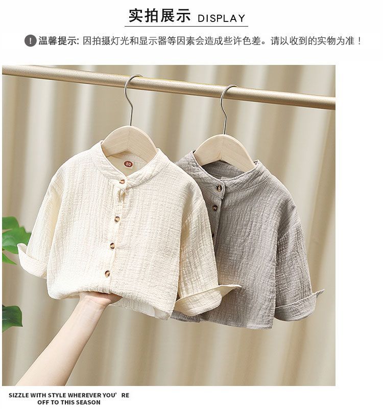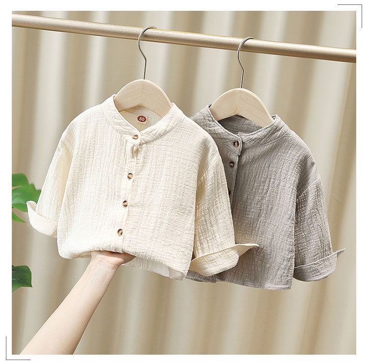 男の子のシャツ春と秋の長袖の子供の中国式の綿の麻のシャツの赤ちゃんの秋の服の立襟の男の子の秋の揚げ物の上着