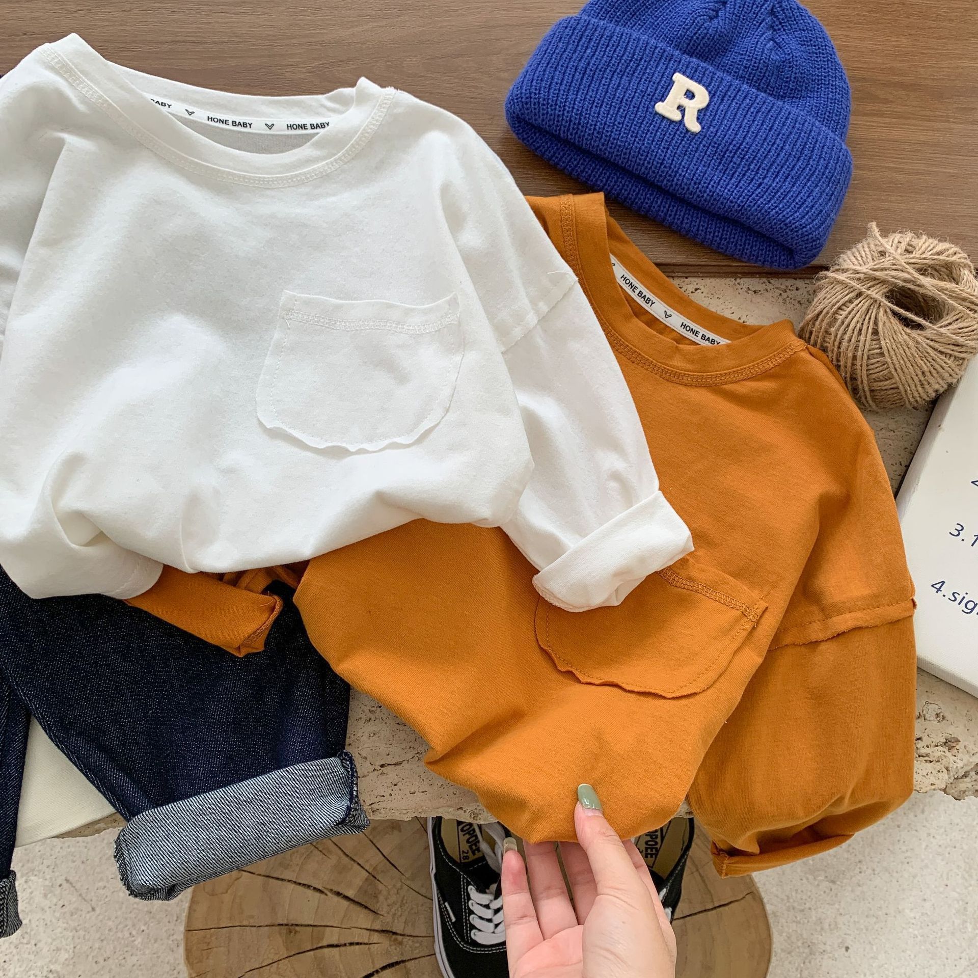 男の子と女の子のための春と秋の新作子供用長袖Tシャツ、薄手でゆったりとしたカジュアルなトップス、トレンディなTシャツ