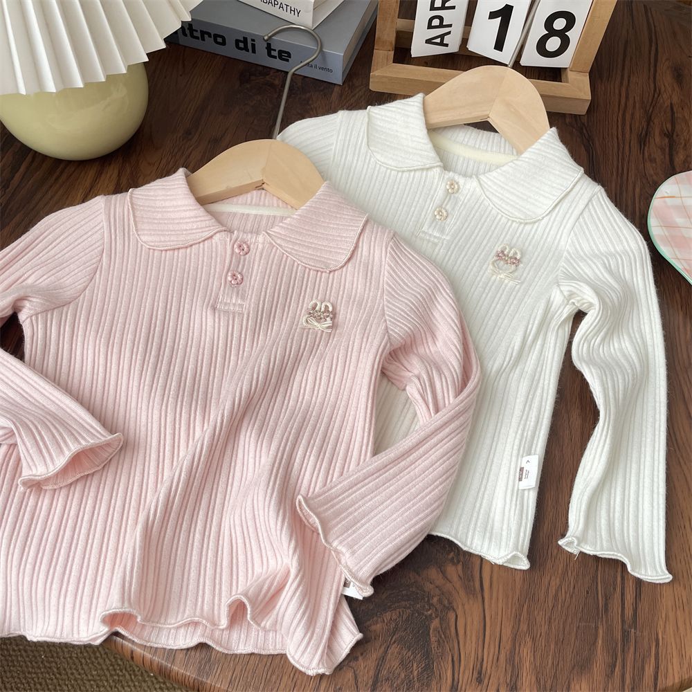 女童娃娃领打底衫春秋装新款儿童长袖T恤薄款洋气女宝宝翻领上衣