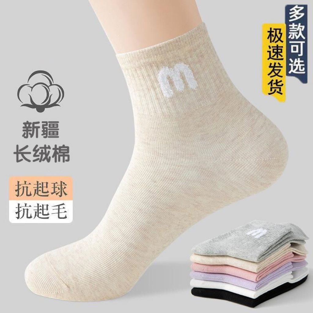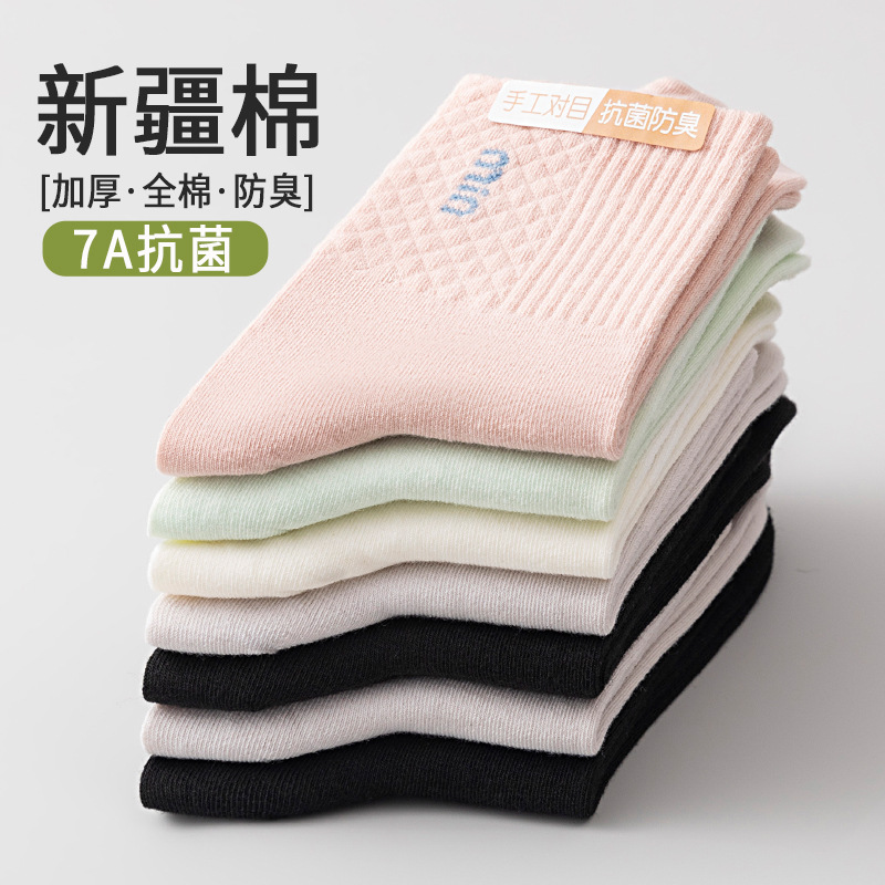 袜子女棉袜秋冬ins潮新疆棉抗起球中筒袜吸汗抗菌防臭袜秋冬加厚