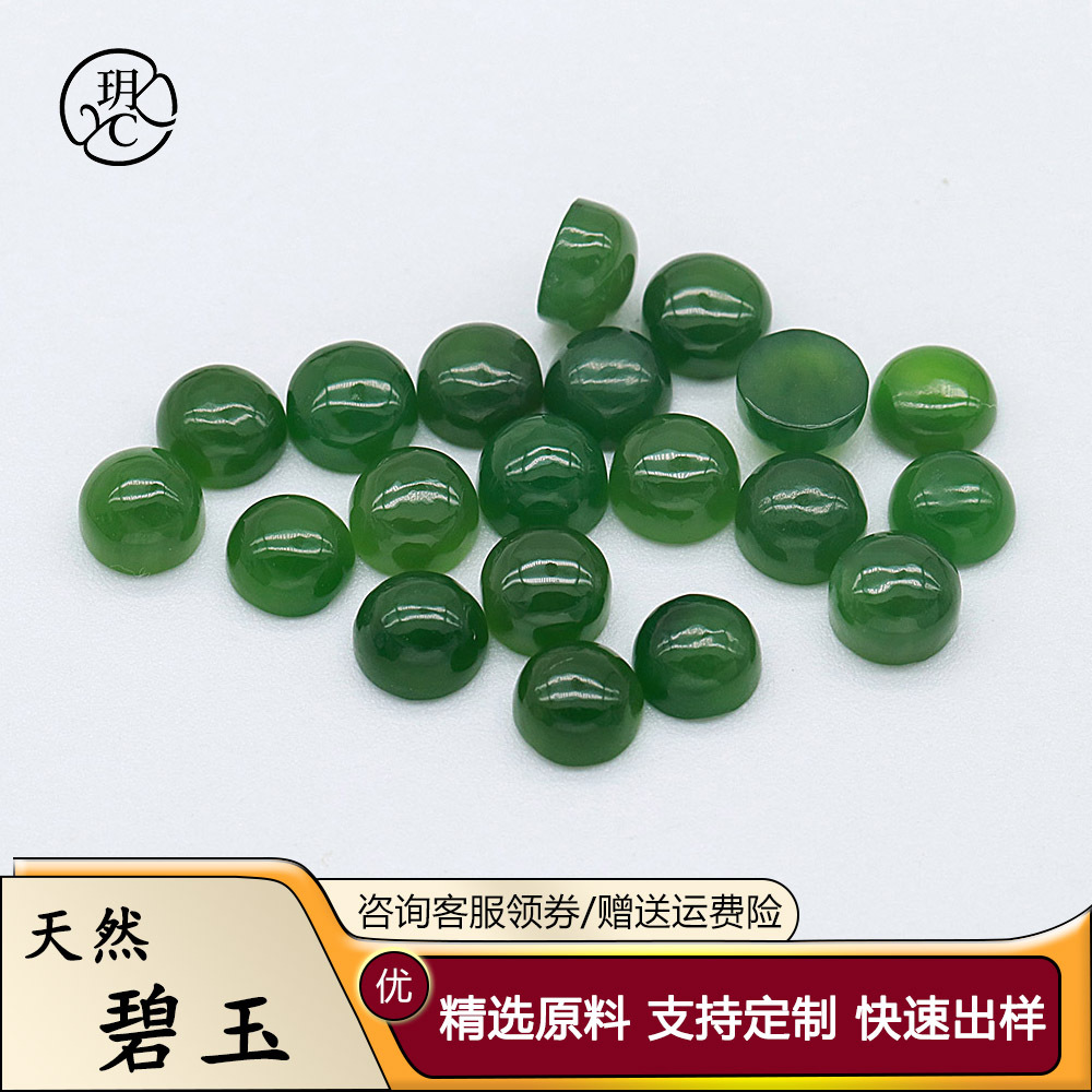天然和田玉碧玉圆形戒面 平底素面高品质无黑点和田玉裸石批发