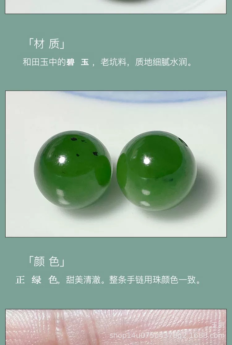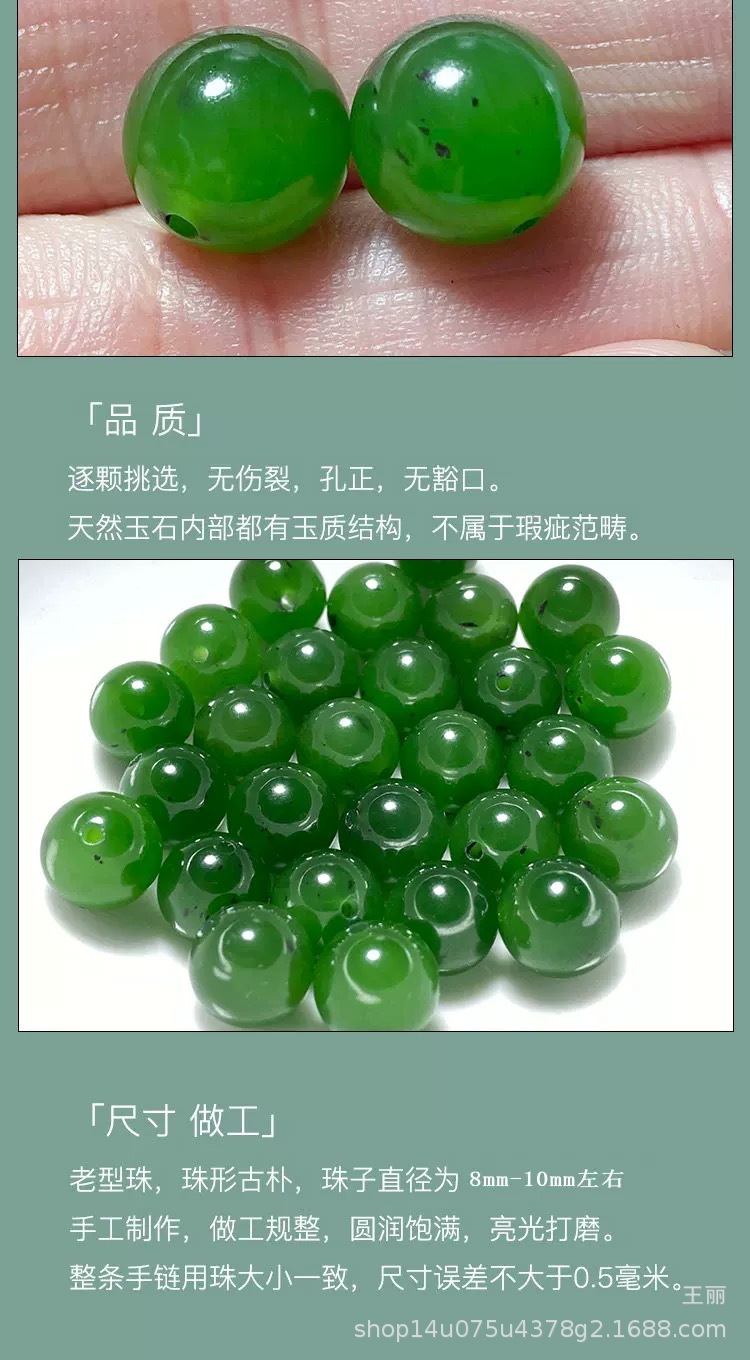 天然和田玉碧玉玉玉手串新疆氷底ホウレンソウ緑単輪ビーズブレスレット