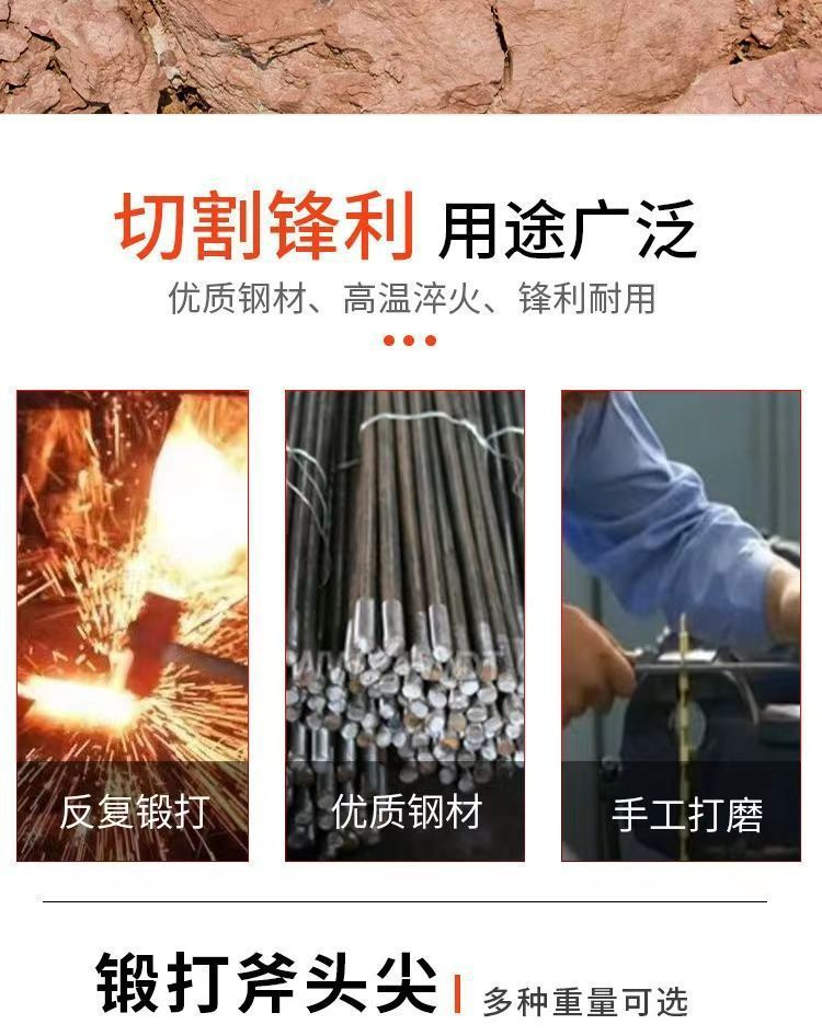 锻打家用柴尖斧头尖加重全钢柴尖分裂劈木斧尖户外劈柴斧劈桩工具