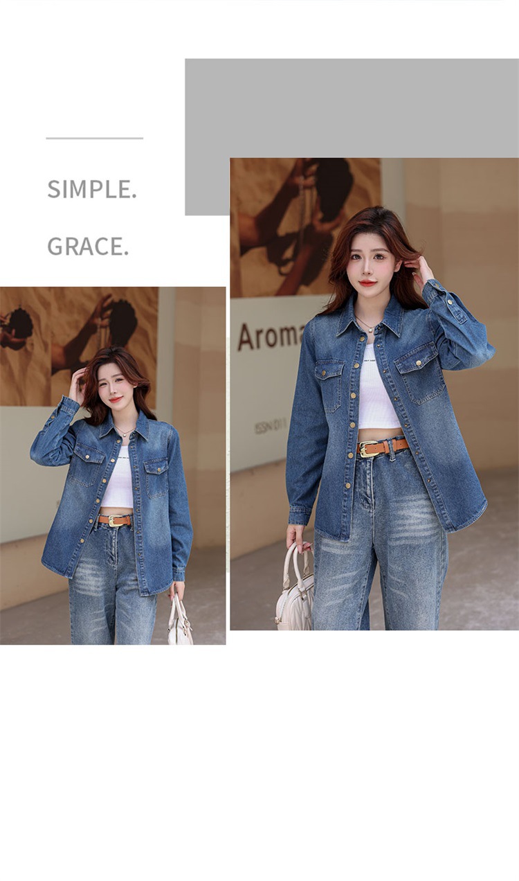 白鹿スターの同型の小柄なレトロなデニムのシャツの女性2024の新型の薄い肩の上着のゆったりしているコート
