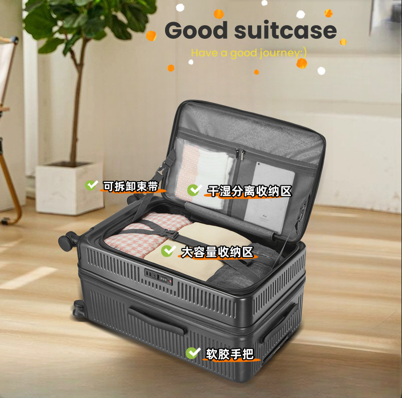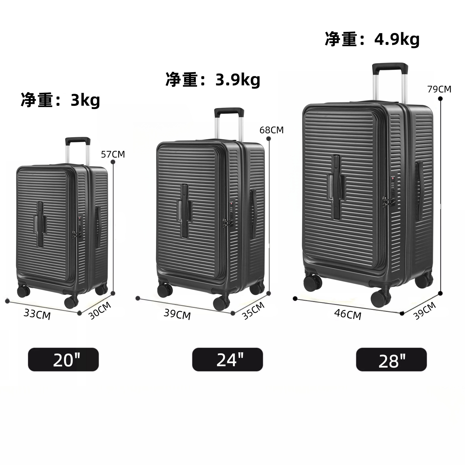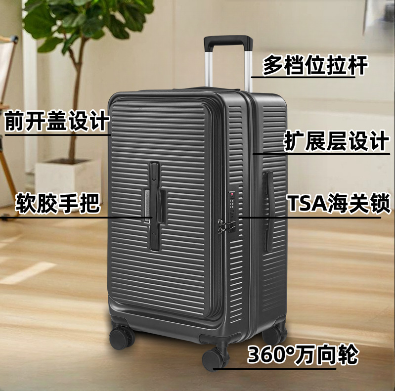 フロントオープン多機能スーツケース20インチスーツケース万向輪レジャー旅行スーツケース