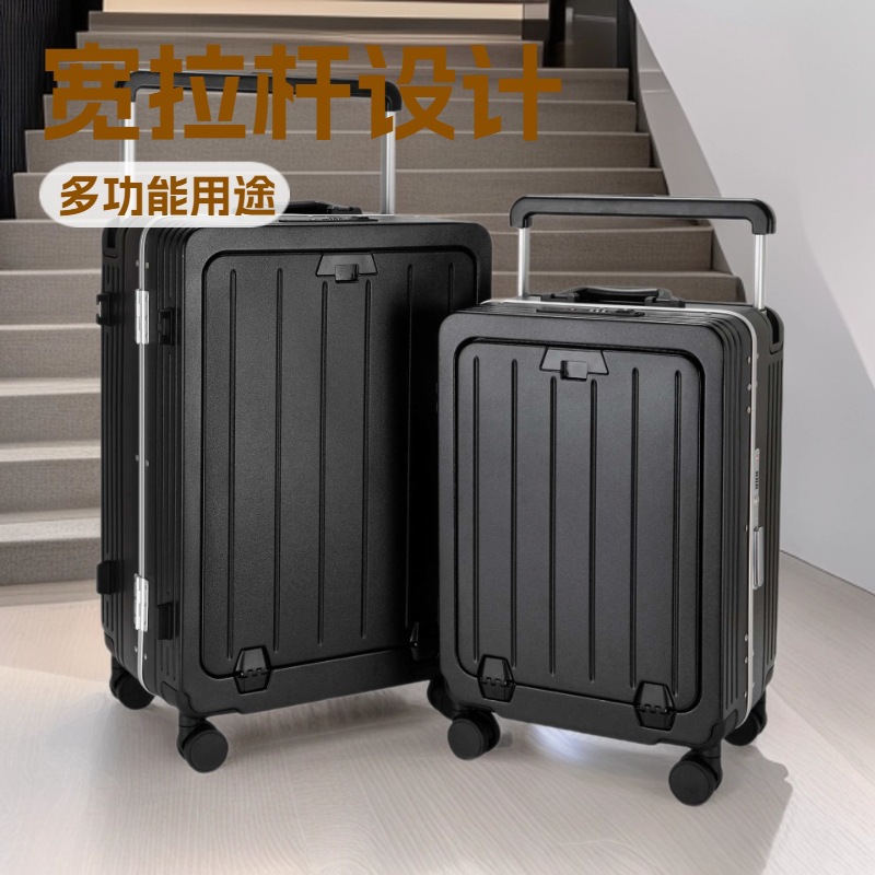 前开口铝框宽拉杆行李箱女20寸新多功能旅行登机皮箱男
