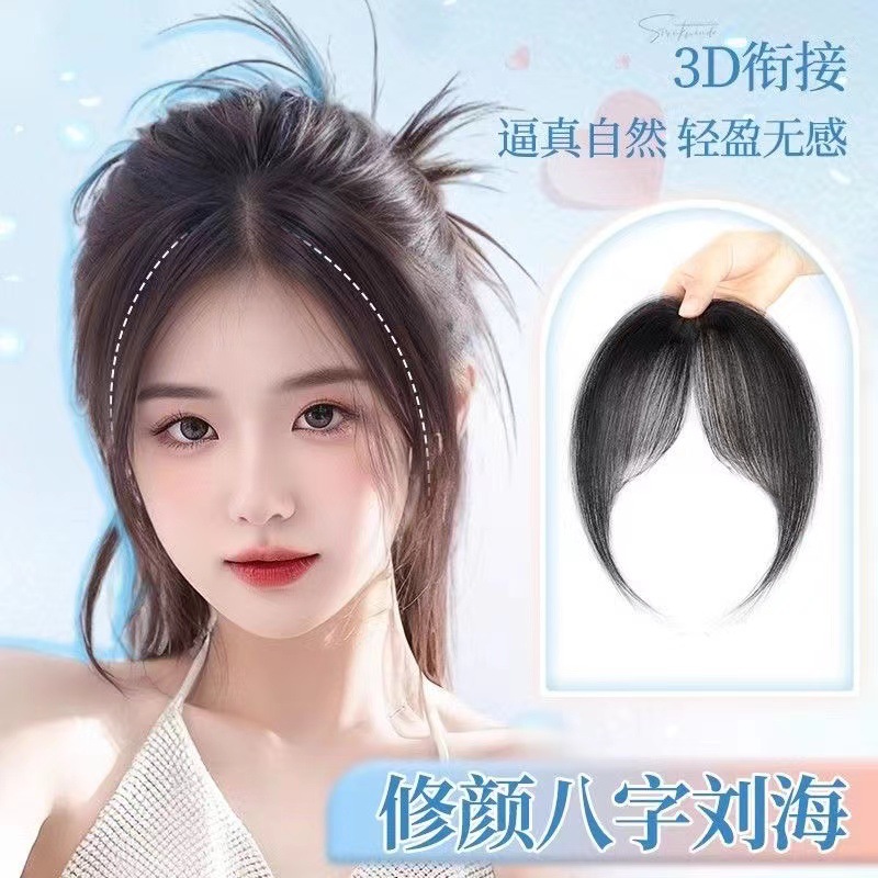八字刘海真发女头顶补发增发量自然蓬松前额无痕修颜法式刘海片