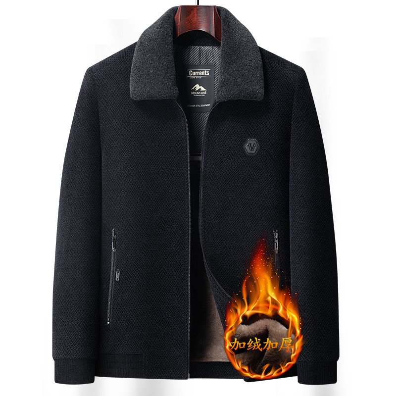 冬季雪尼尔外套中老年人翻领夹克加绒棉衣爸爸爷爷装休闲呢子上衣
