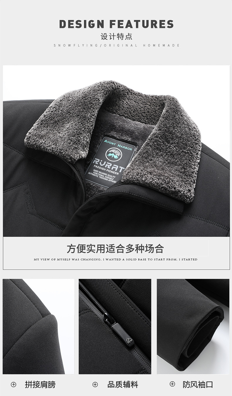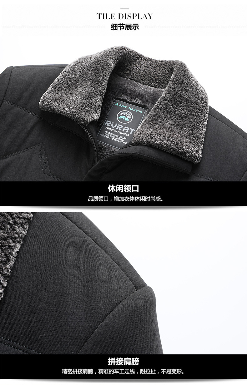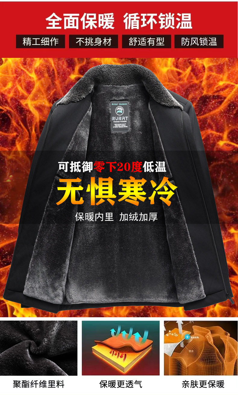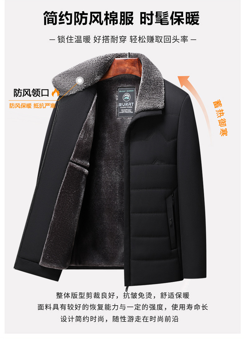 秋冬雪尼尔加绒棉衣翻领休闲外套爸爸爷爷装夹克加厚男装棉服上衣