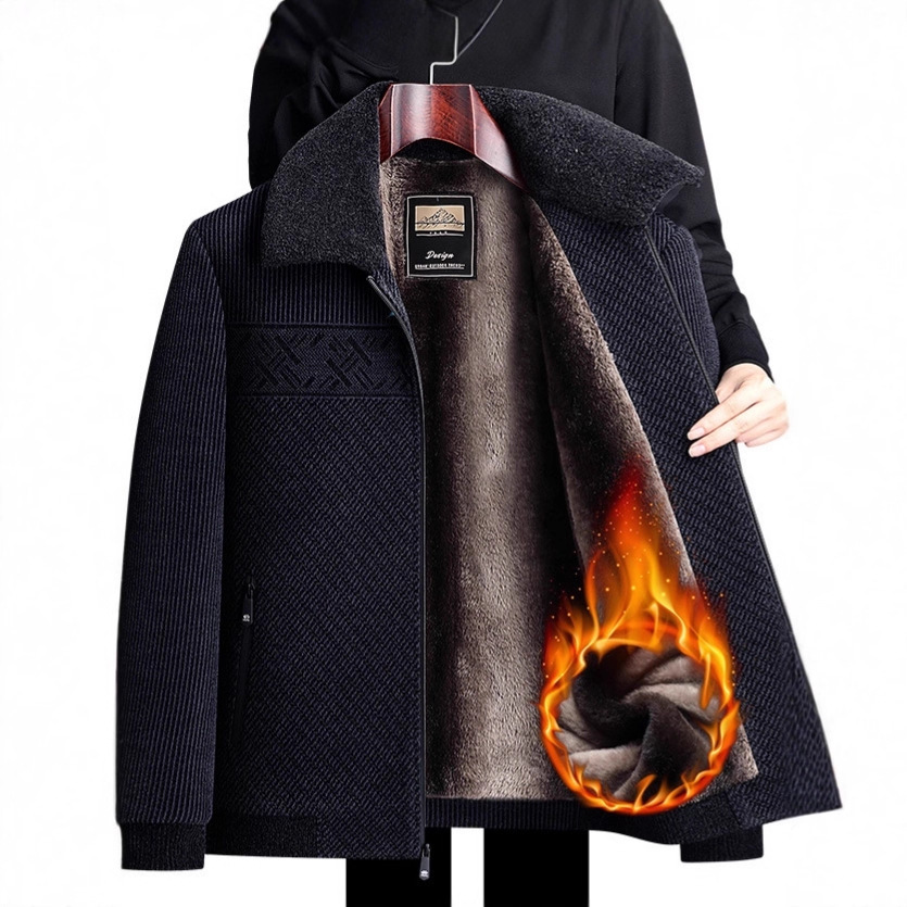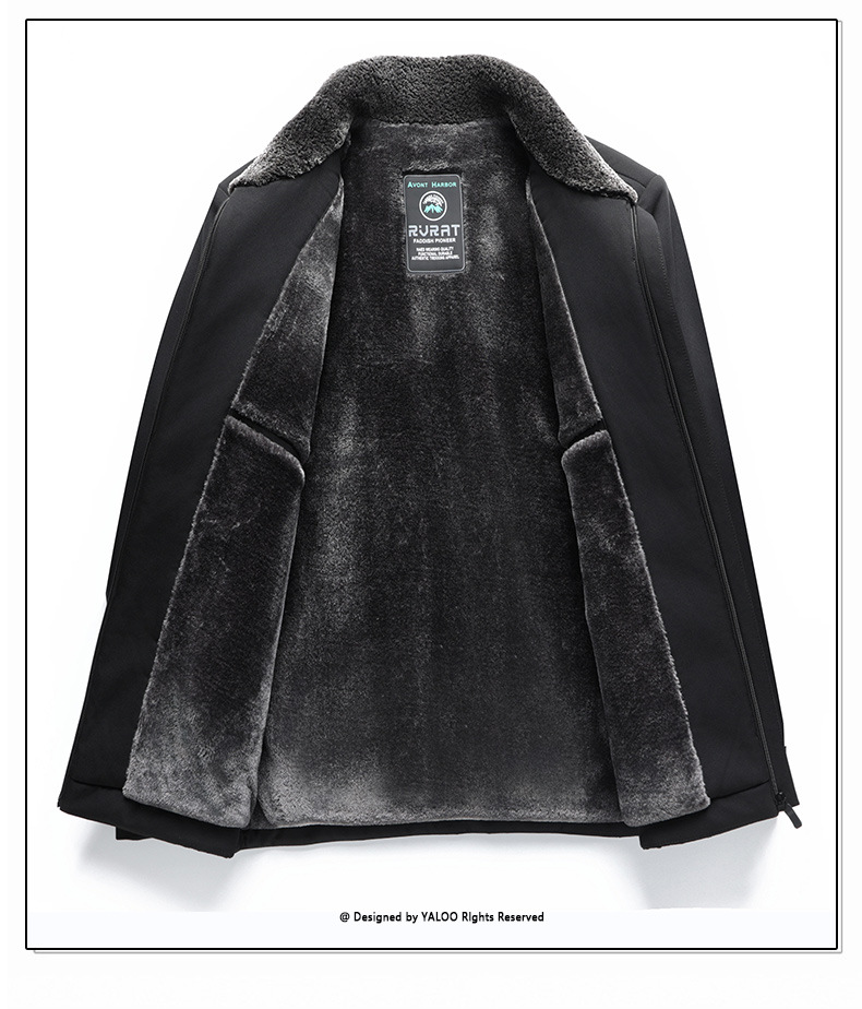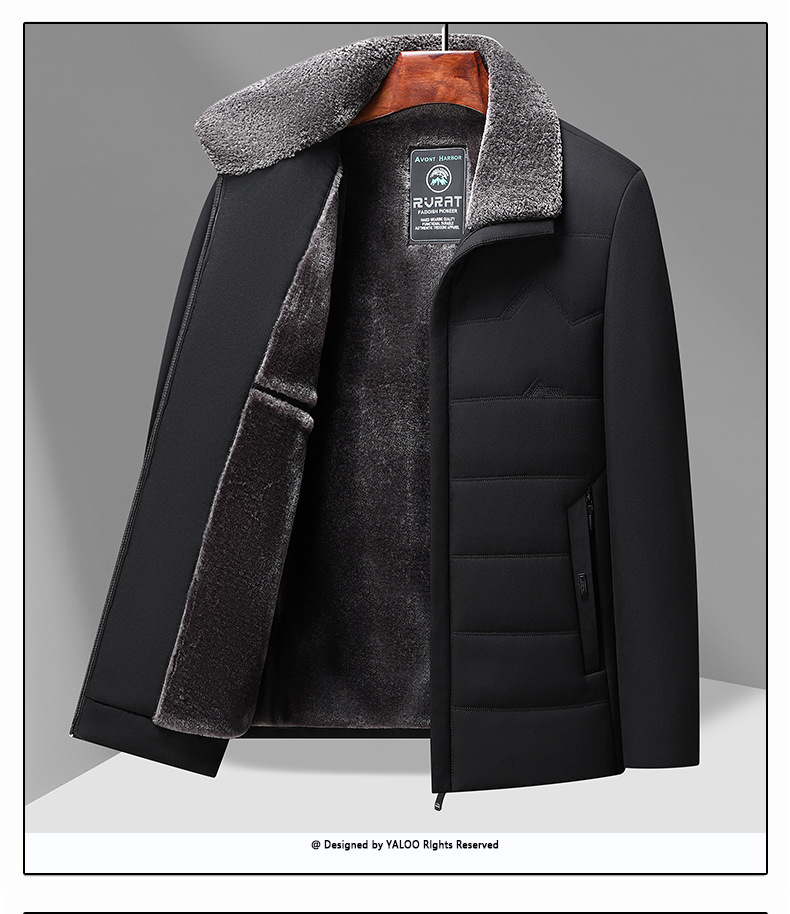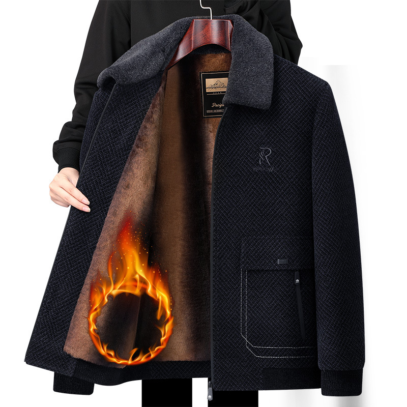 秋冬ベルベット綿コート、お父さんコート、中高年男性厚手ラペル冬コート、お父さんコート、暖かい綿ジャケット
