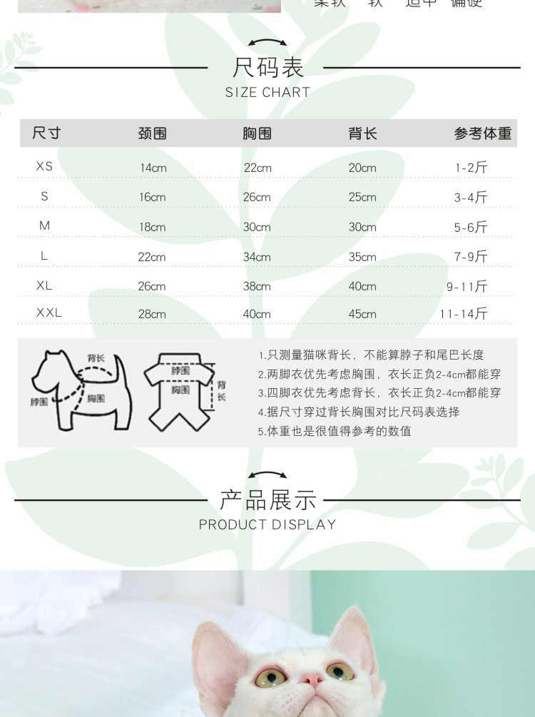 MOORSPET宠物猫四脚衣纯棉护肚子无毛猫衣服斯芬克斯幼猫德文衣服