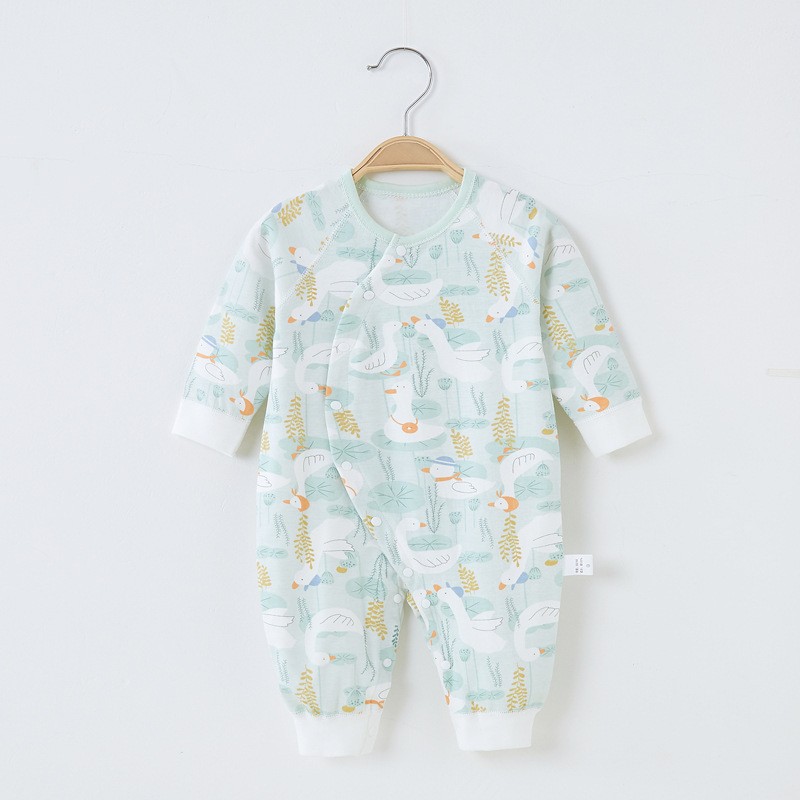 赤ちゃんの連体服春秋冬のa類純綿新生児男女赤ちゃんの長袖が斜めに開いています。
