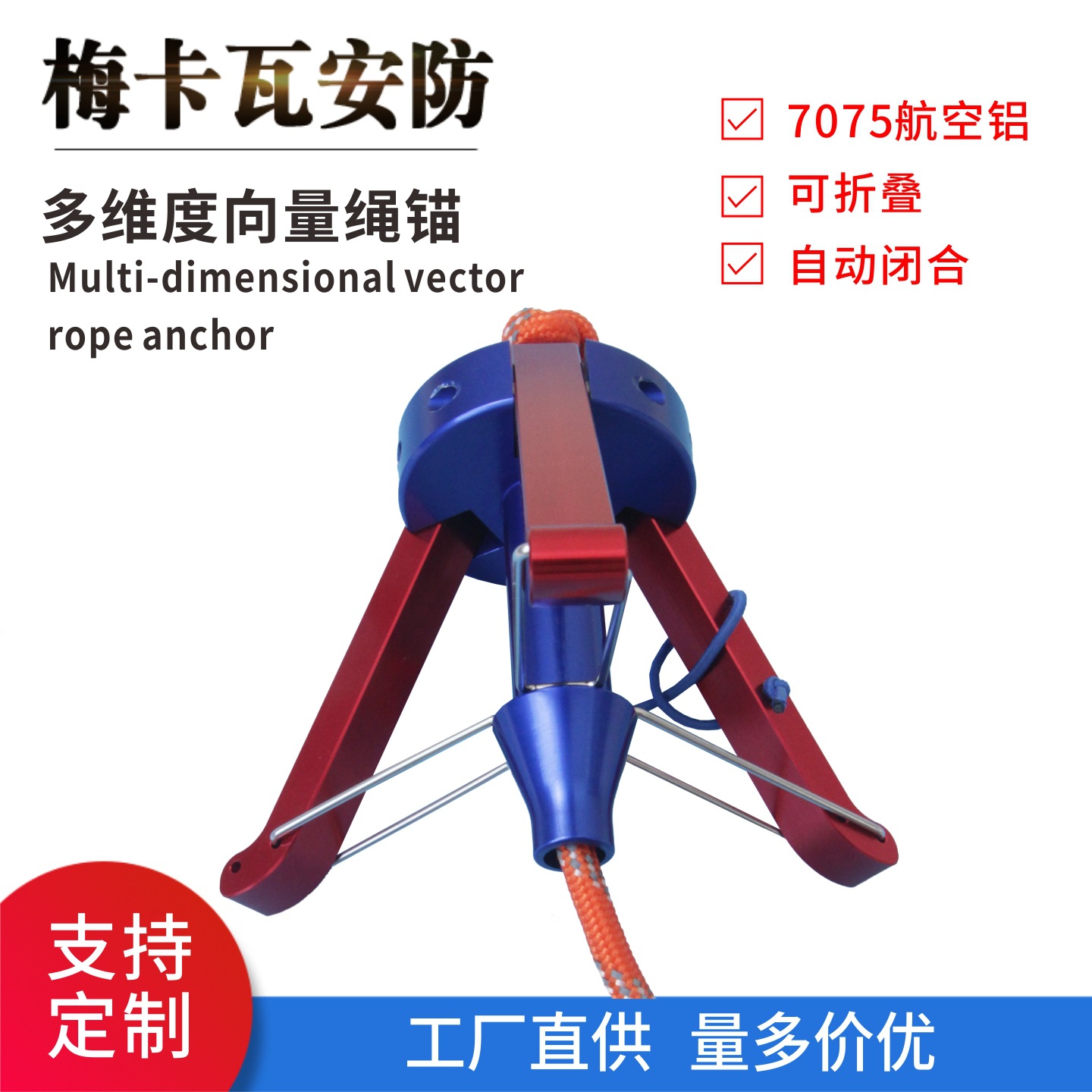 折りたたみ式多次元ベクトルロープアンカー 3 爪フック 7075 航空アルミニウムステンレス鋼救助自動閉鎖ロープアンカー