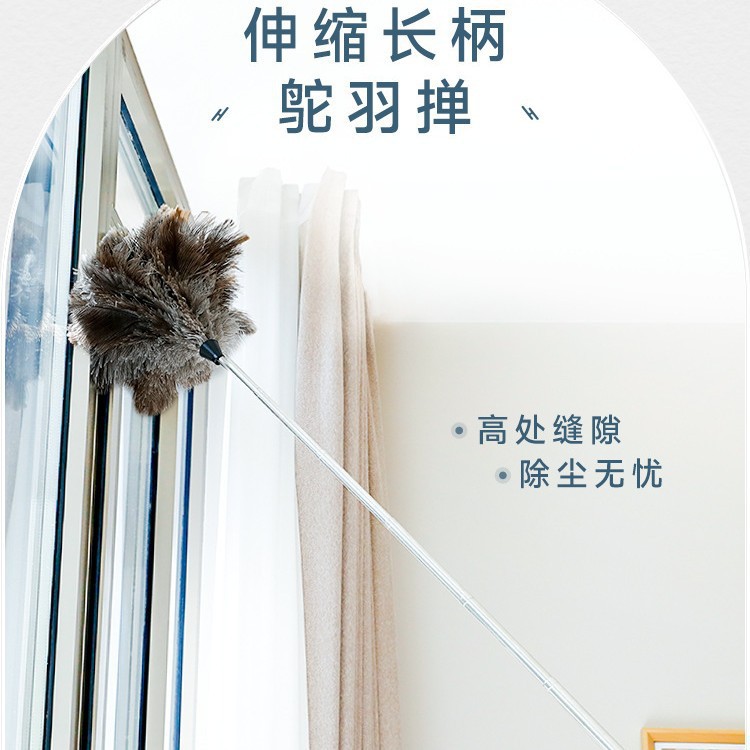 鸵鸟毛掸子除尘扫灰家用可伸缩不掉毛除尘神器除静电掸子去尘扫