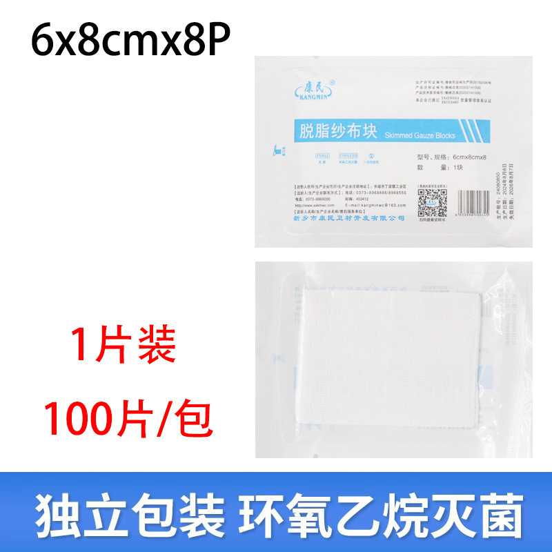 康民脱脂ガーゼブロック6 * 8cm8P使い捨て独立包装滅菌ガーゼブロック医療ガーゼドレッシング