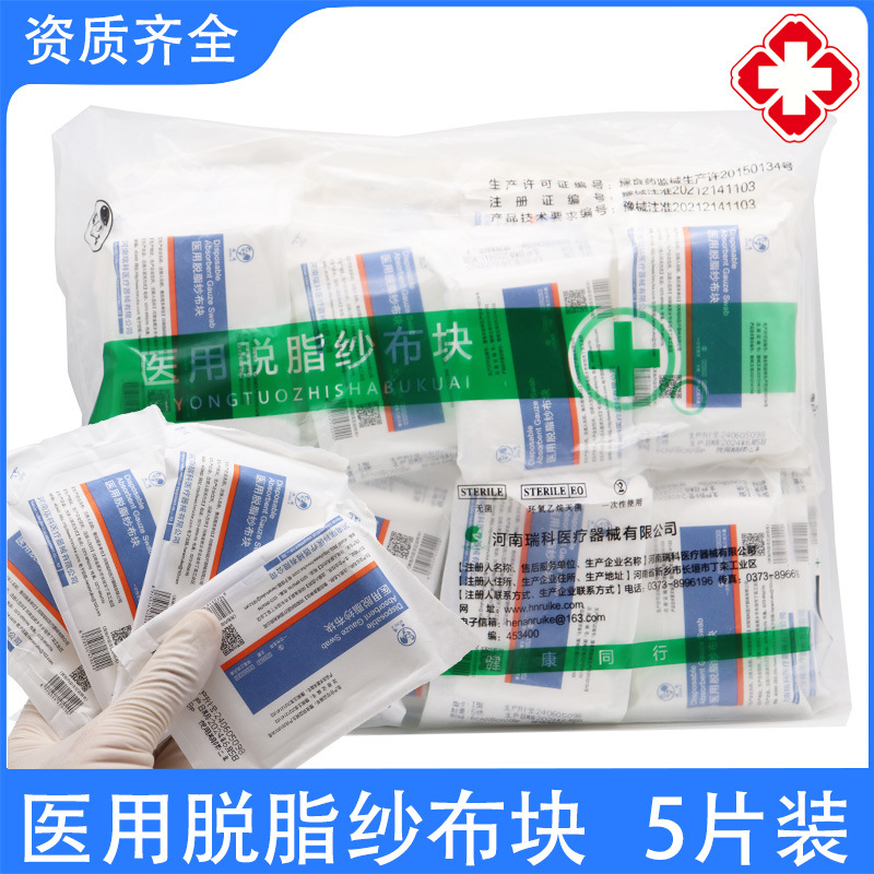 瑞科医療用脱脂ガーゼブロック6x8x8使い捨て無菌ドレッシングガーゼブロック5枚の小包