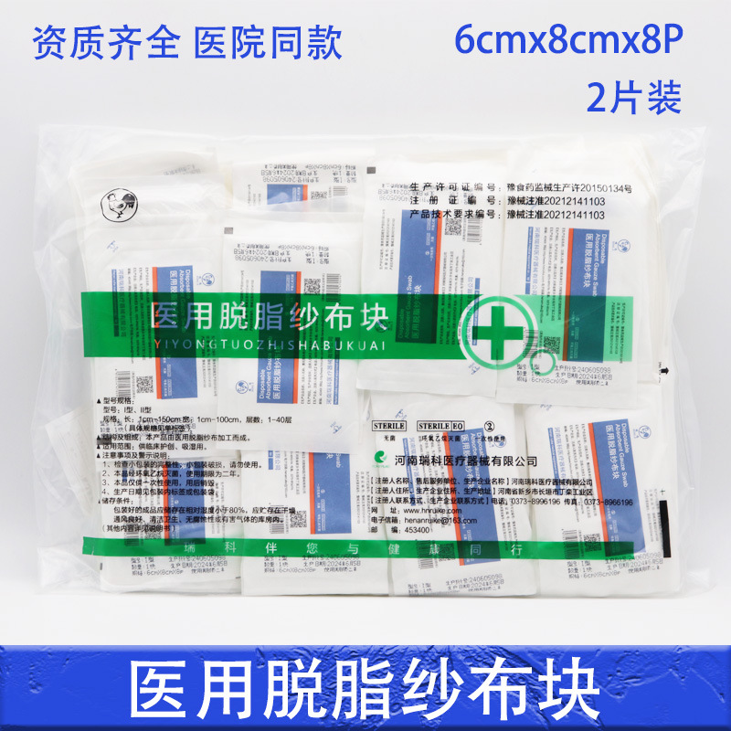 瑞科医療用脱脂ガーゼブロック6x8x8使い捨て無菌ドレッシングガーゼブロック2枚入り小包