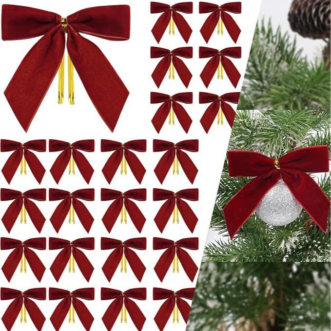 48pcs天鹅绒蝴蝶结圣诞节装饰婚礼派对场景挂件家居礼盒烛台挂饰