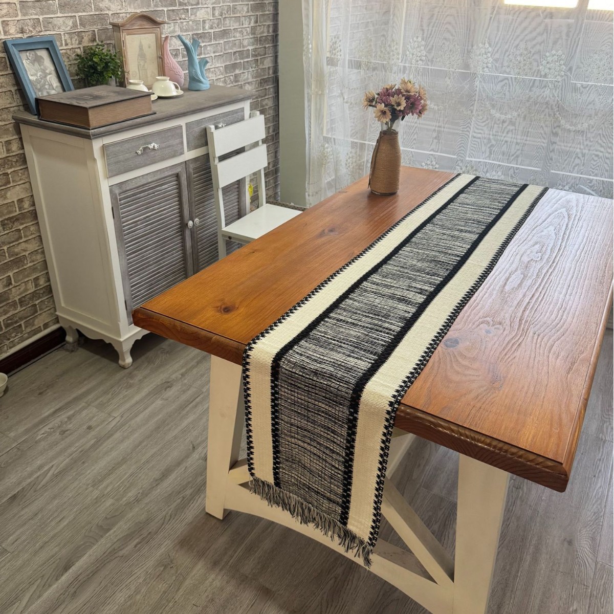 クロスボーダーテーブルフラグ綿とリネン黒と白のコントラストカラーステッチ織りタッセル韓国ホリデーサイドボード暖炉装飾ナプキントレイ