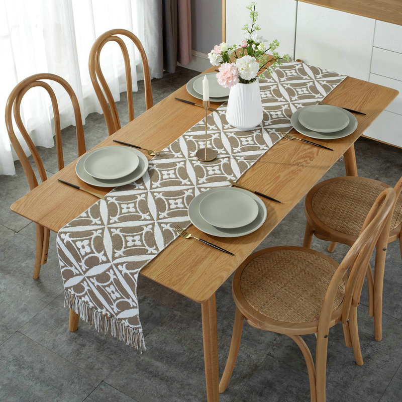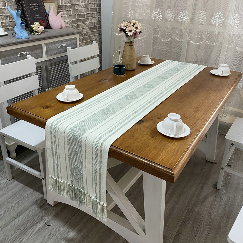 国境を越えたホテルのテーブルクロスのテーブルの装飾の長い布の幾何学のフリンジのテーブルクロスはシンプルで清新なテーブルの旗です。