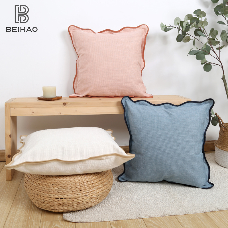 ボヘミアンソリッドカラー枕カバーコントラストカラー波状レースリビングルームソファベッドルームベッドサイドB&B装飾大型クッション