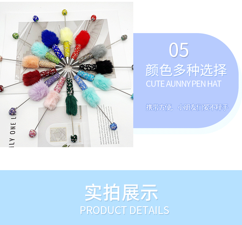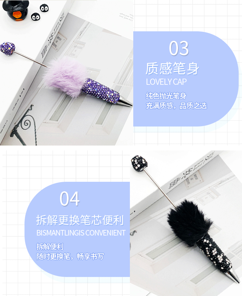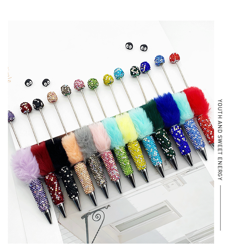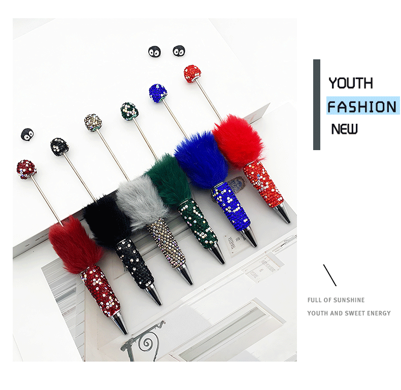 ファーボールABフルダイヤモンドビーズペンキャップ付きダイヤモンド手作りビーズペンビーズペンかわいいぬいぐるみペン