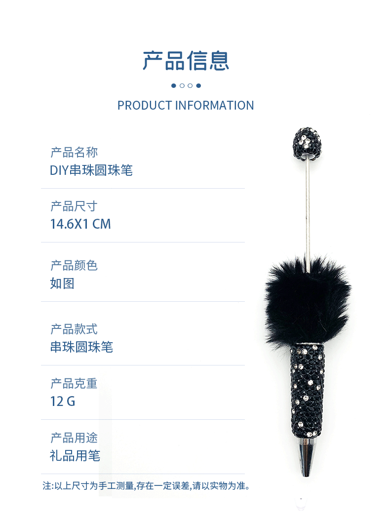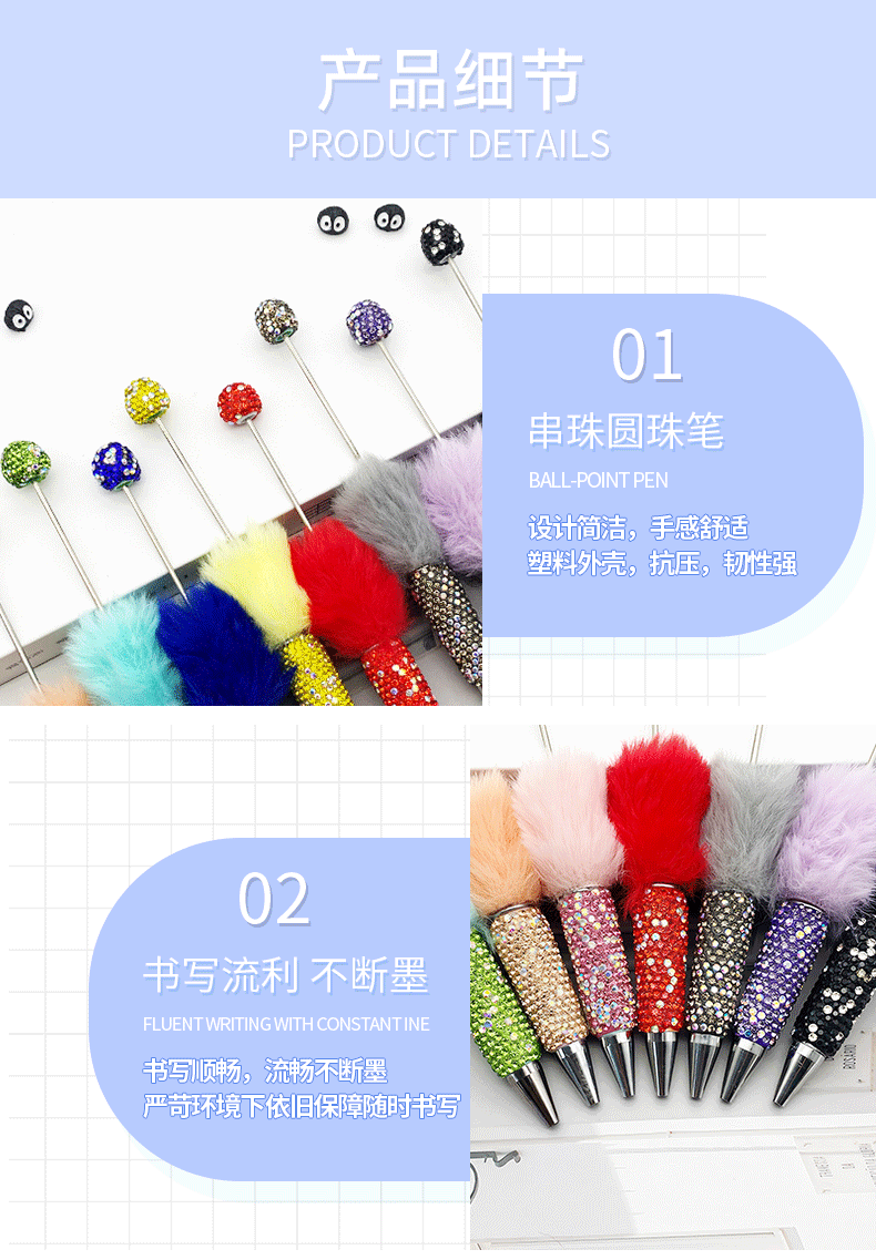 DIY珍珠满钻触碰串珠笔萌粒珠子笔圆珠笔高奢水钻镶钻礼品笔现货