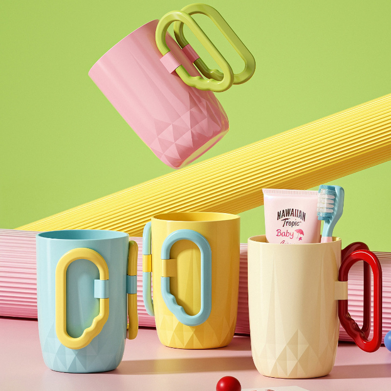 創意うがいコップ家庭用高級感プラスチックカップル歯磨きコップ取っ手付き学生寮透明洗面コップ