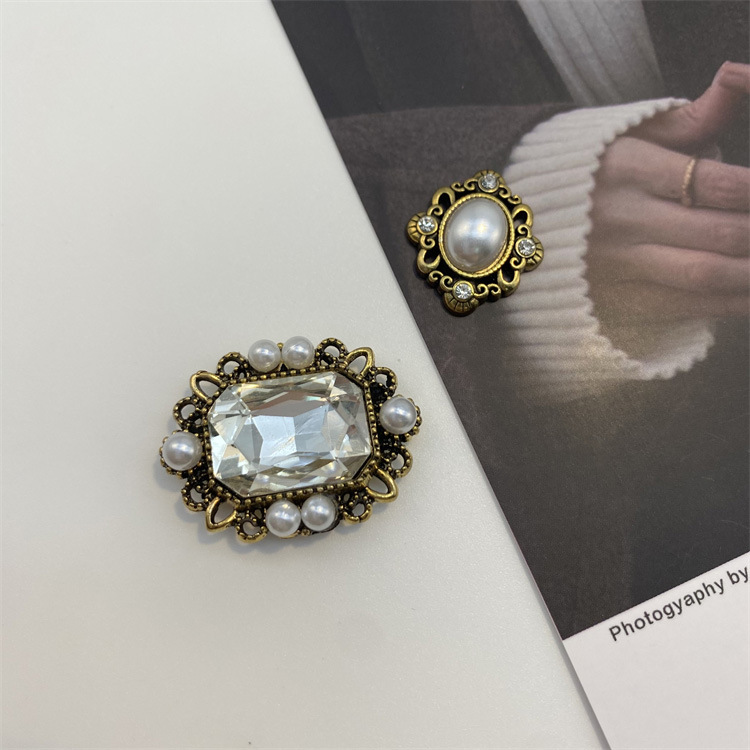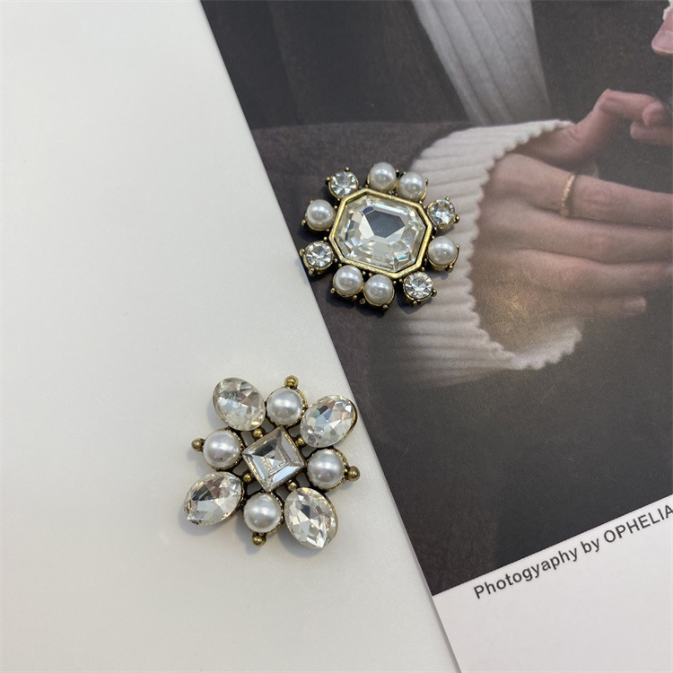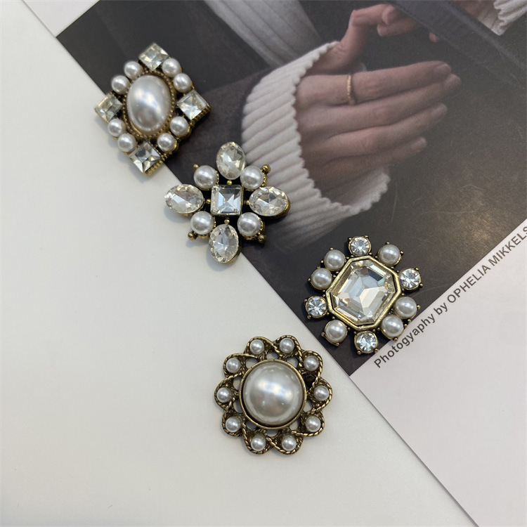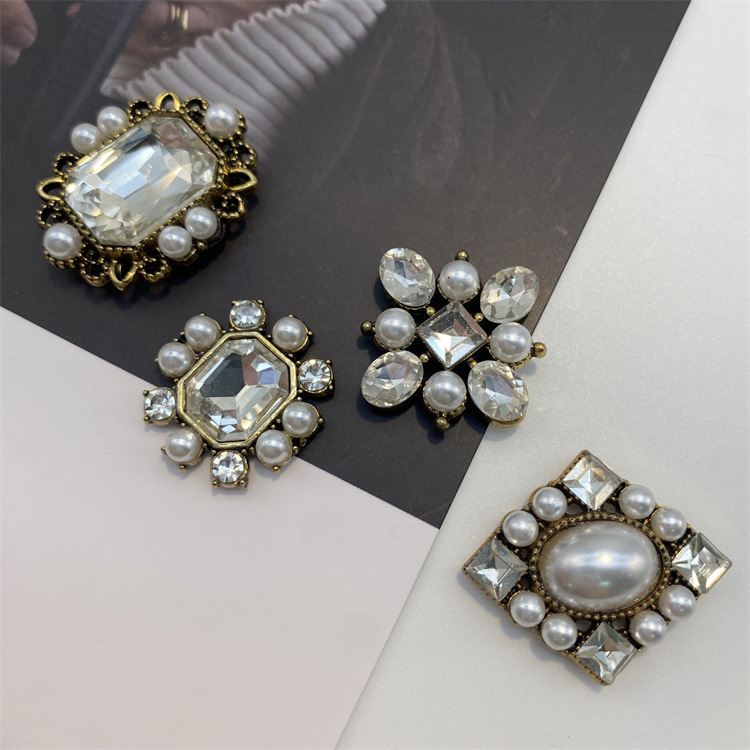 レトロ満ドリル真珠花盤合金部品気質小香服装ボタン材料DIY髪飾り靴花アクセサリー