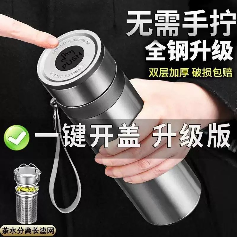 一键开盖车载水杯316不锈钢速开保温杯茶水分离杯男士商务泡茶杯