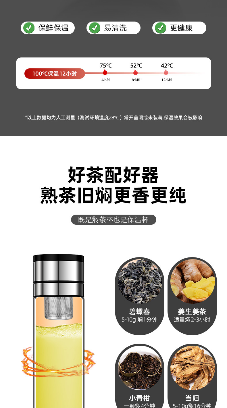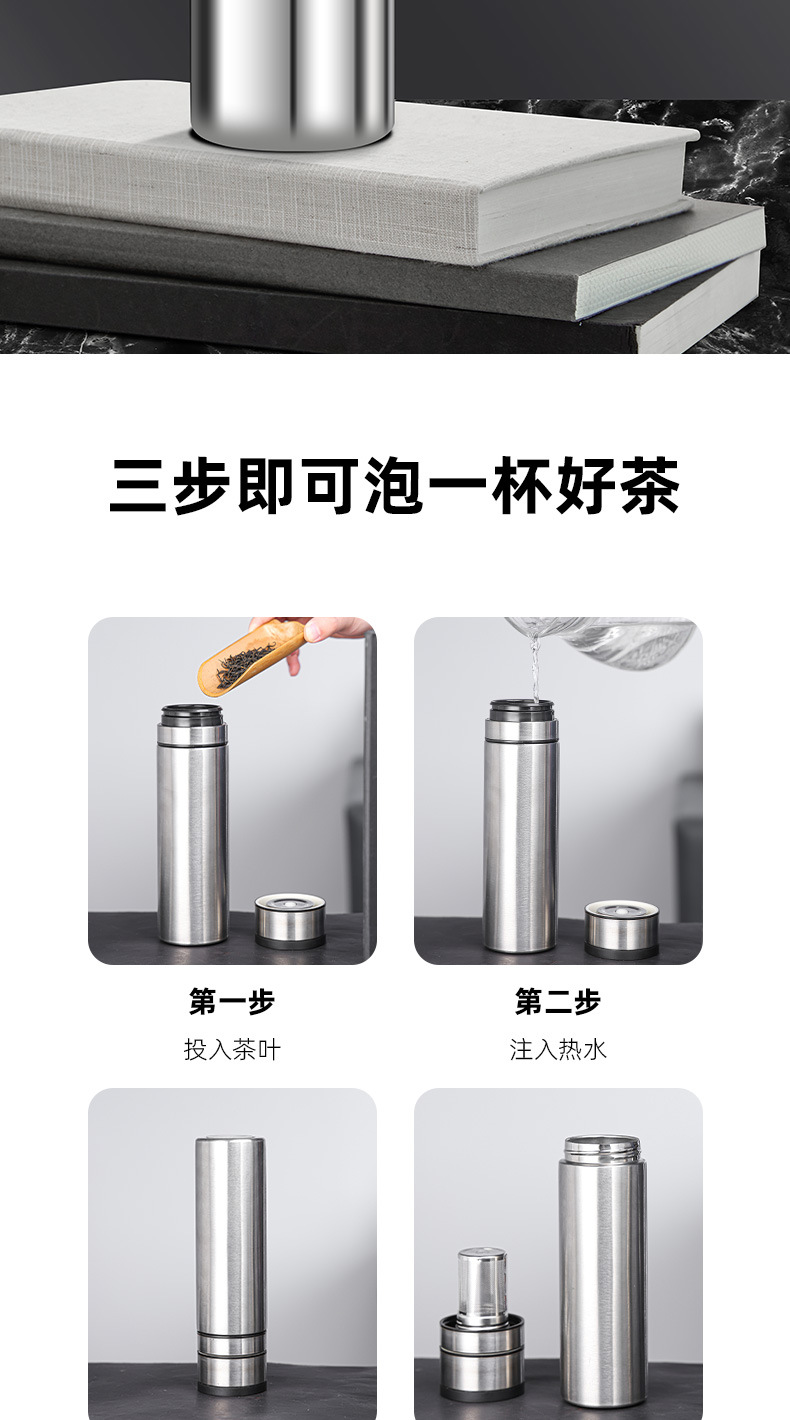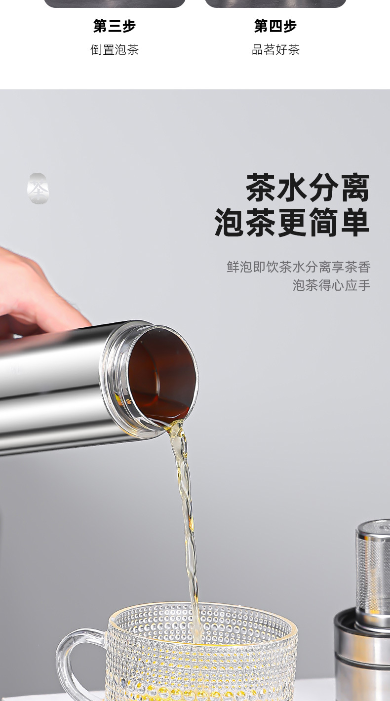 送料無料 ワンタッチ開閉 保温カップ ステンレス製 保温水筒 メンズ専用 高級茶水分離式茶器