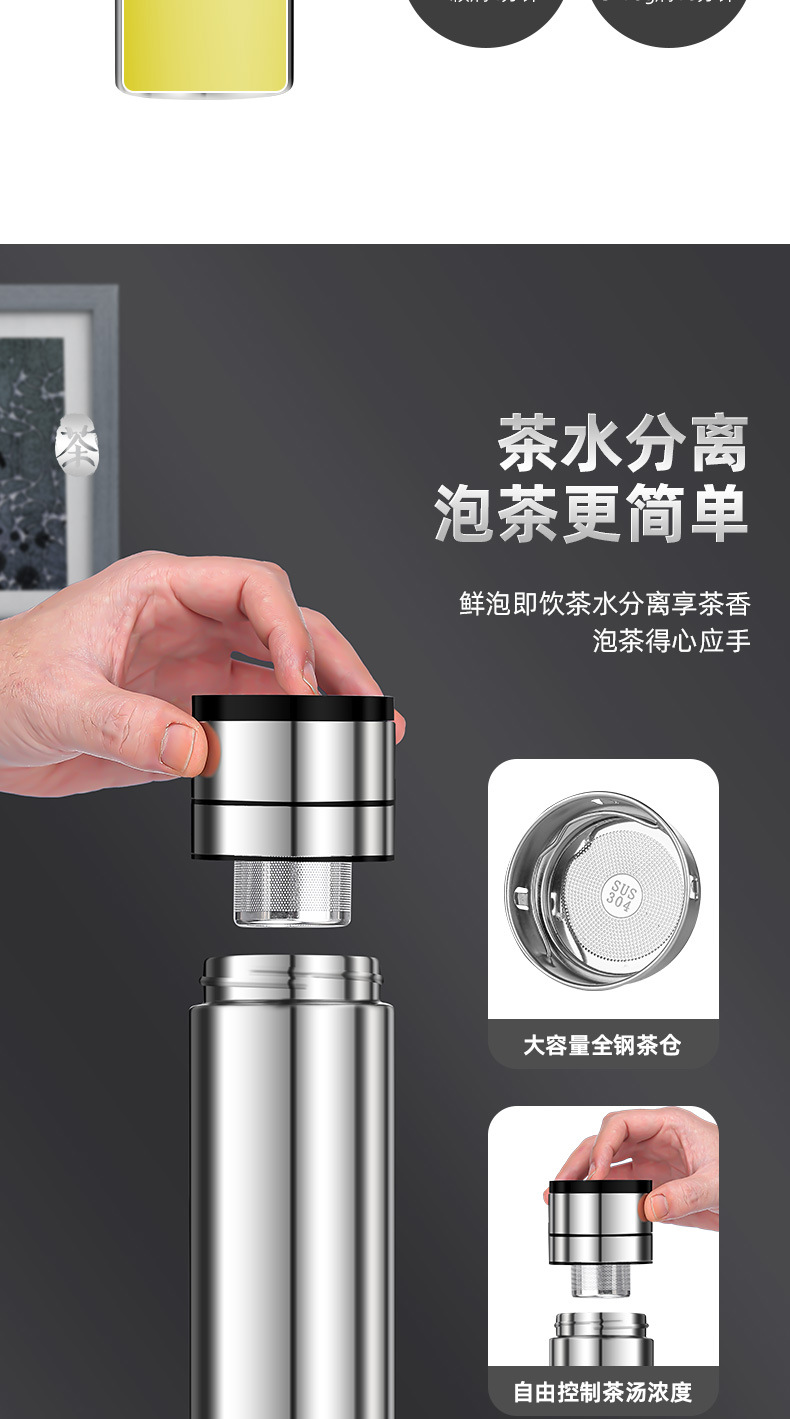 一键开盖大容量不锈钢保温杯茶水分离便携车载保温杯商务礼品杯