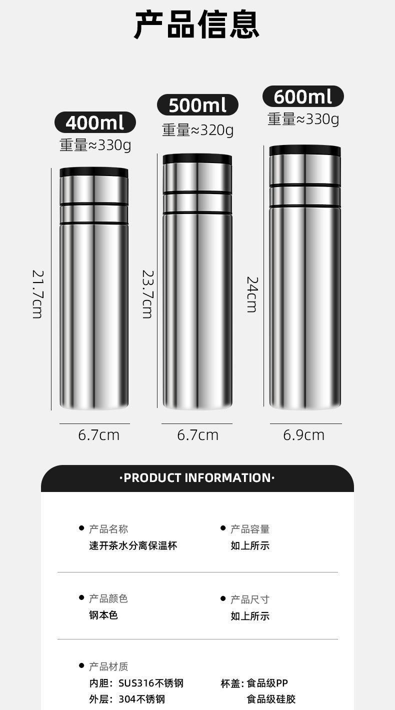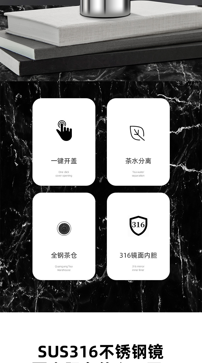ワンキー速開保温カップ316ステンレス茶分離カップ携帯カップビジネス車載カップ