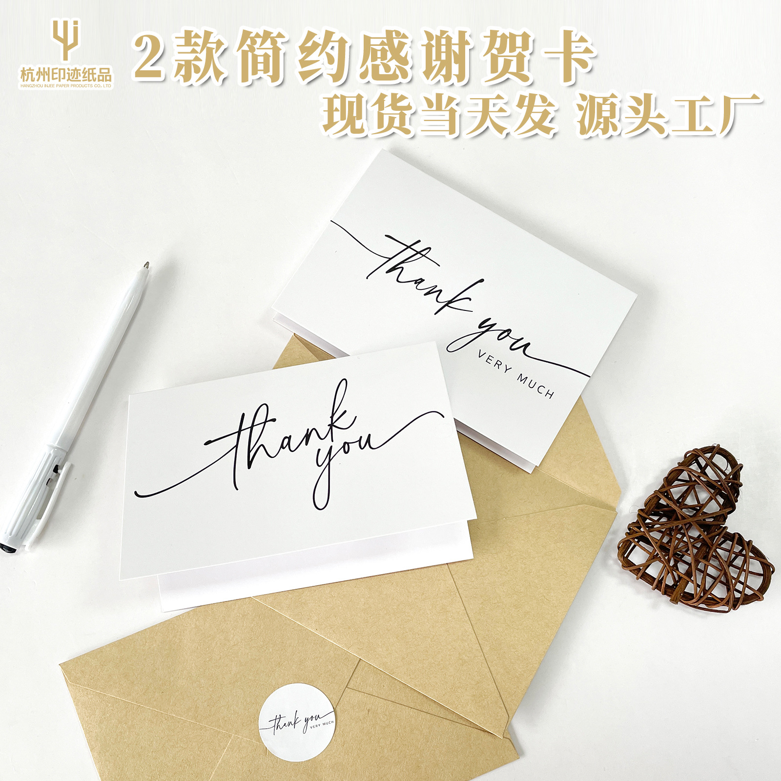 现货亚马逊简约感谢贺卡带信封贴纸折卡英文设计空白可手写留言卡