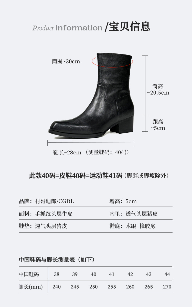 秋冬の新型の四角いハイヒールのブーツの男性は5cm高くなります。