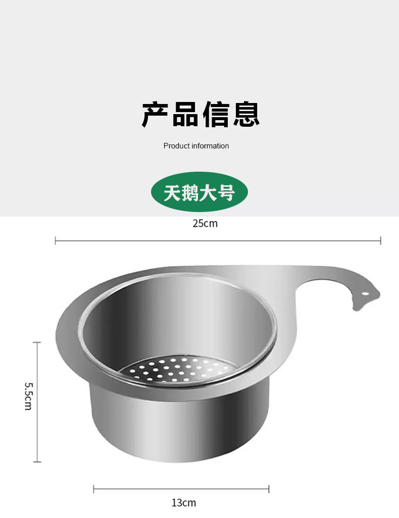 ステンレススワン水切りバスケット - 小さな漏れネット,ステンレススワン水切りカゴ・大漏れネット