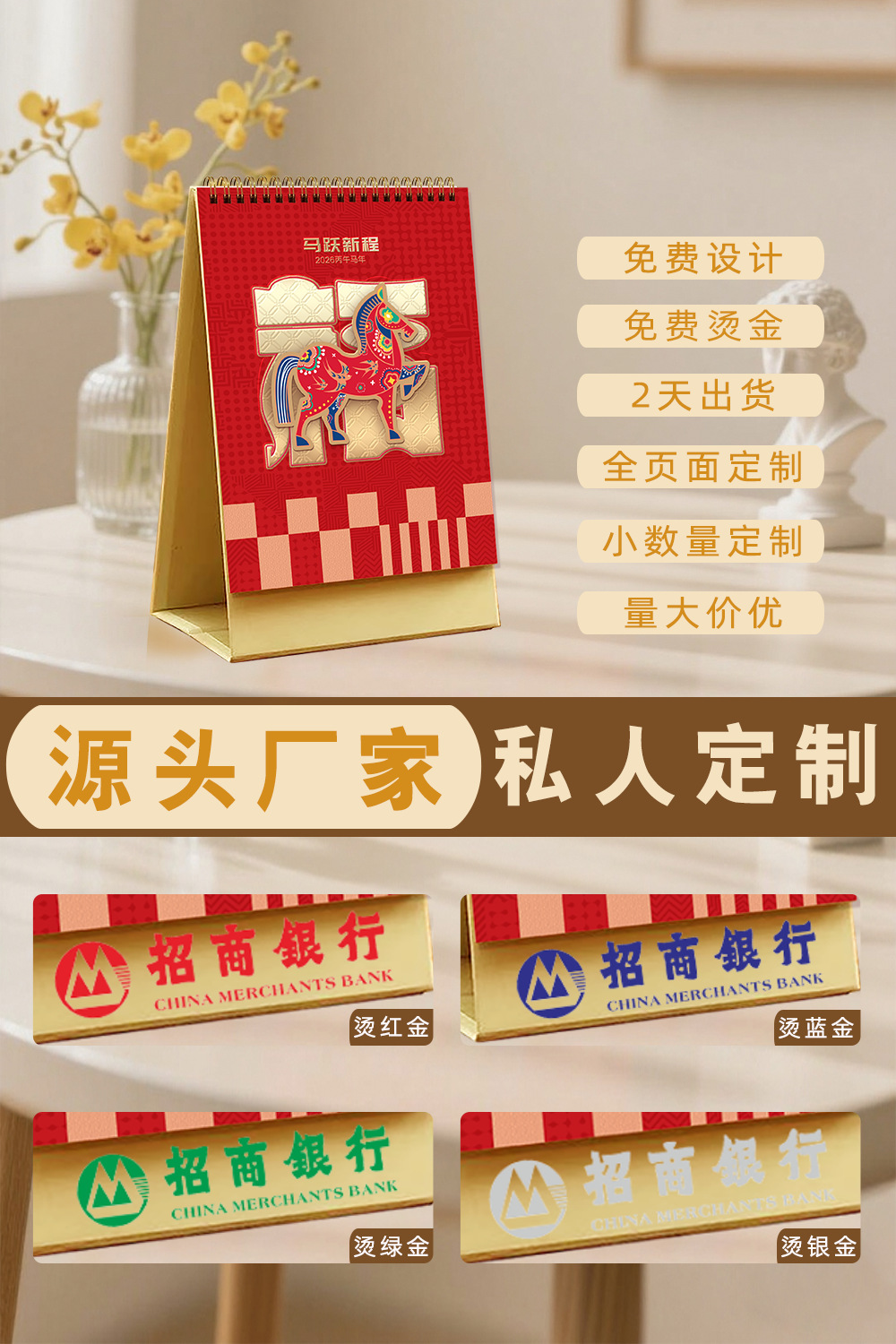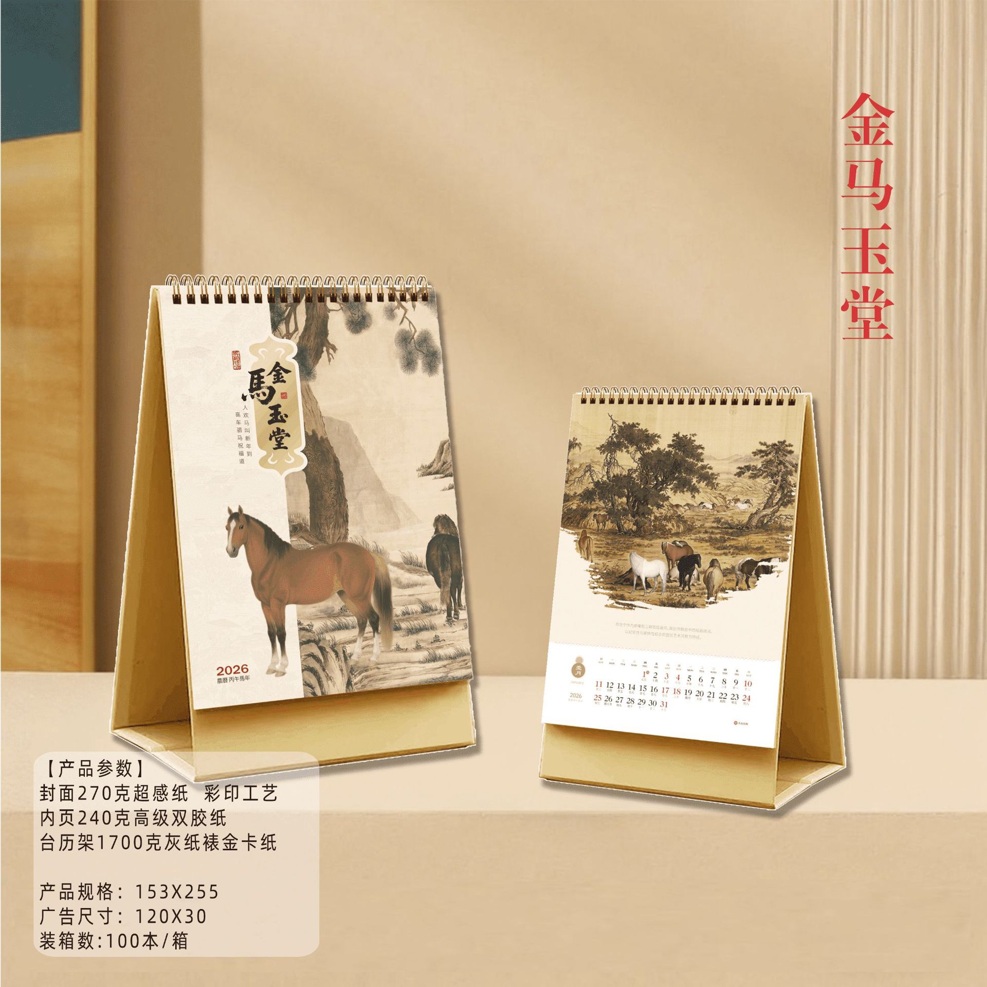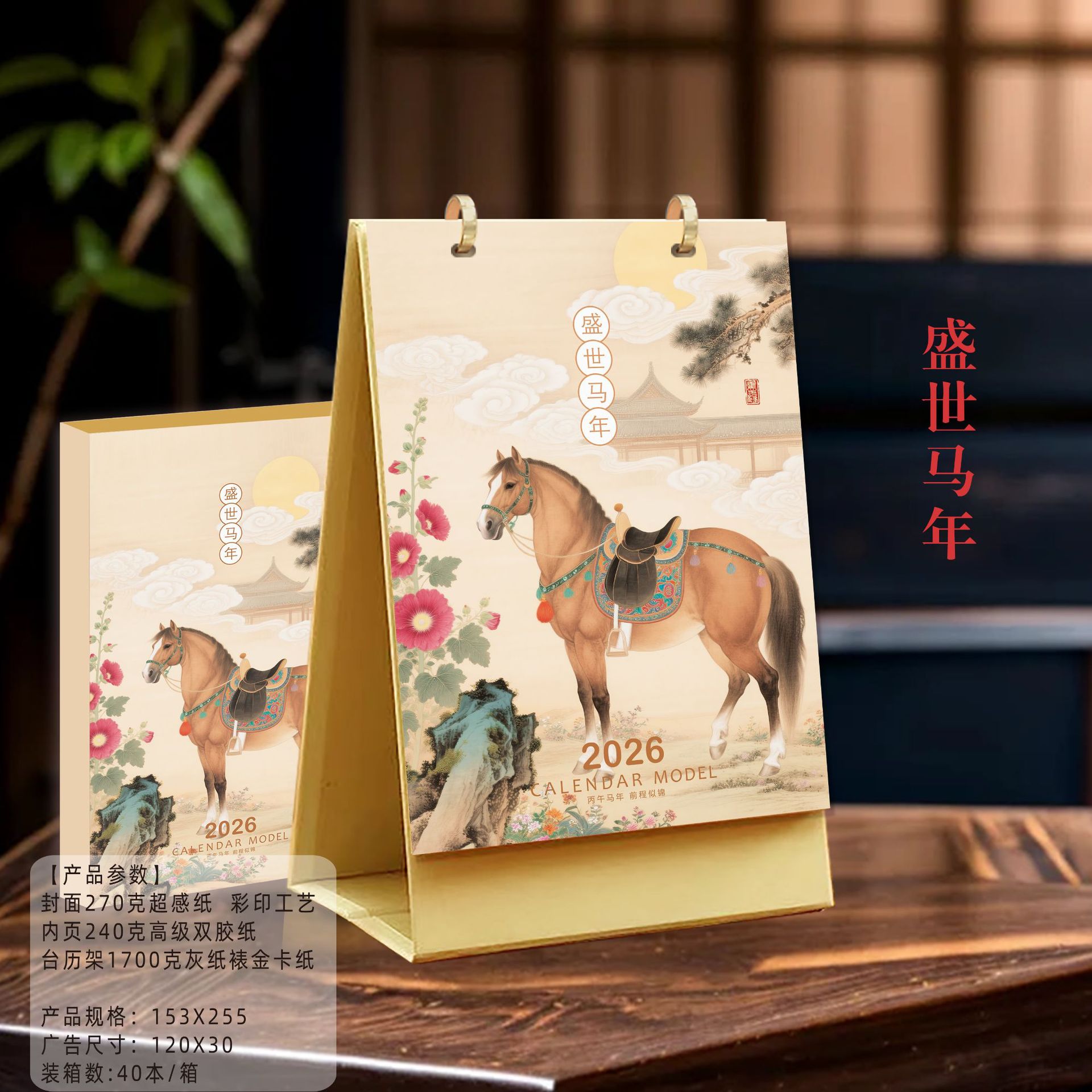 2026年馬年木製卓上カレンダー オフィス装飾 新型カレンダー シンプルでクリエイティブなデスクトップカレンダー 箔押しロゴ 広告卸売