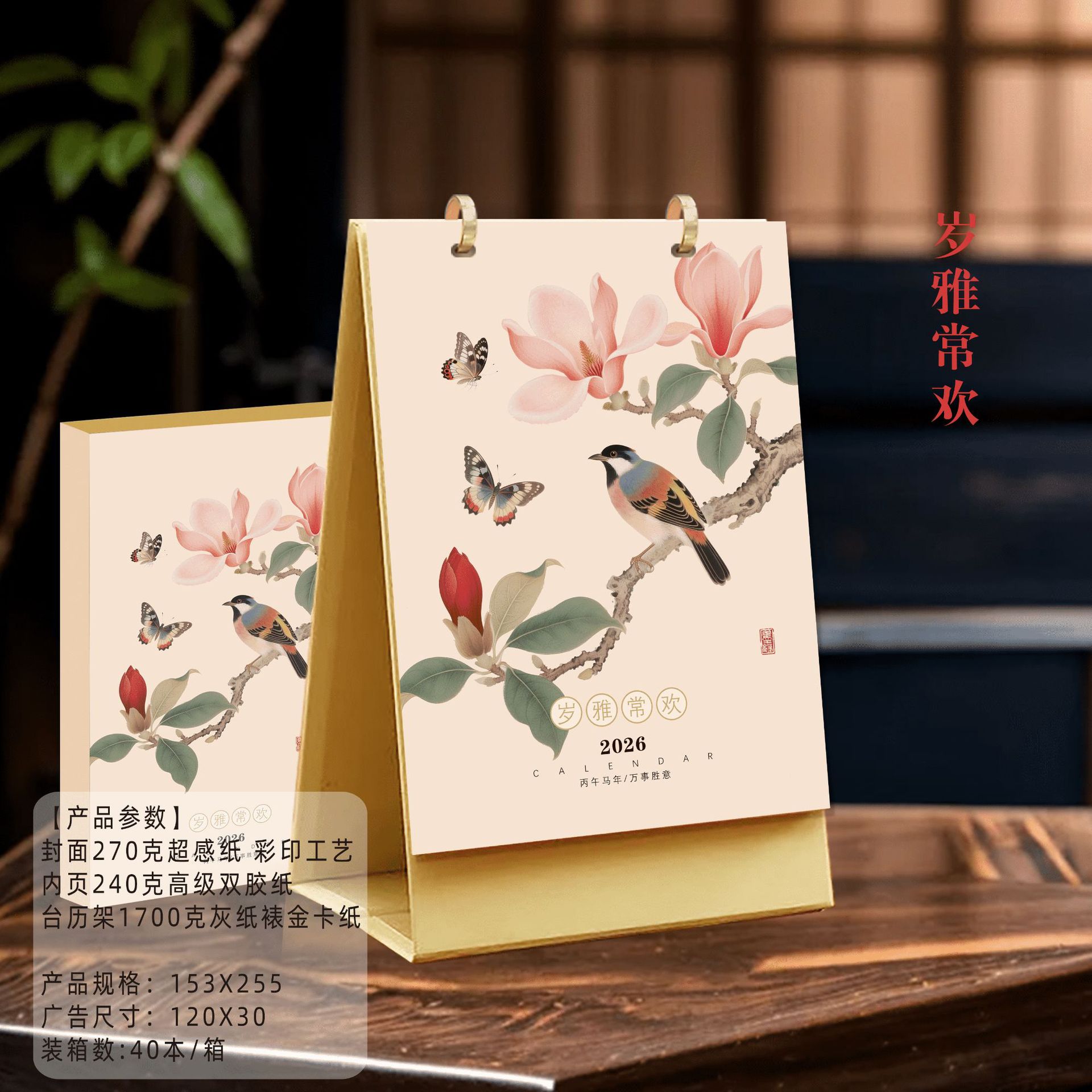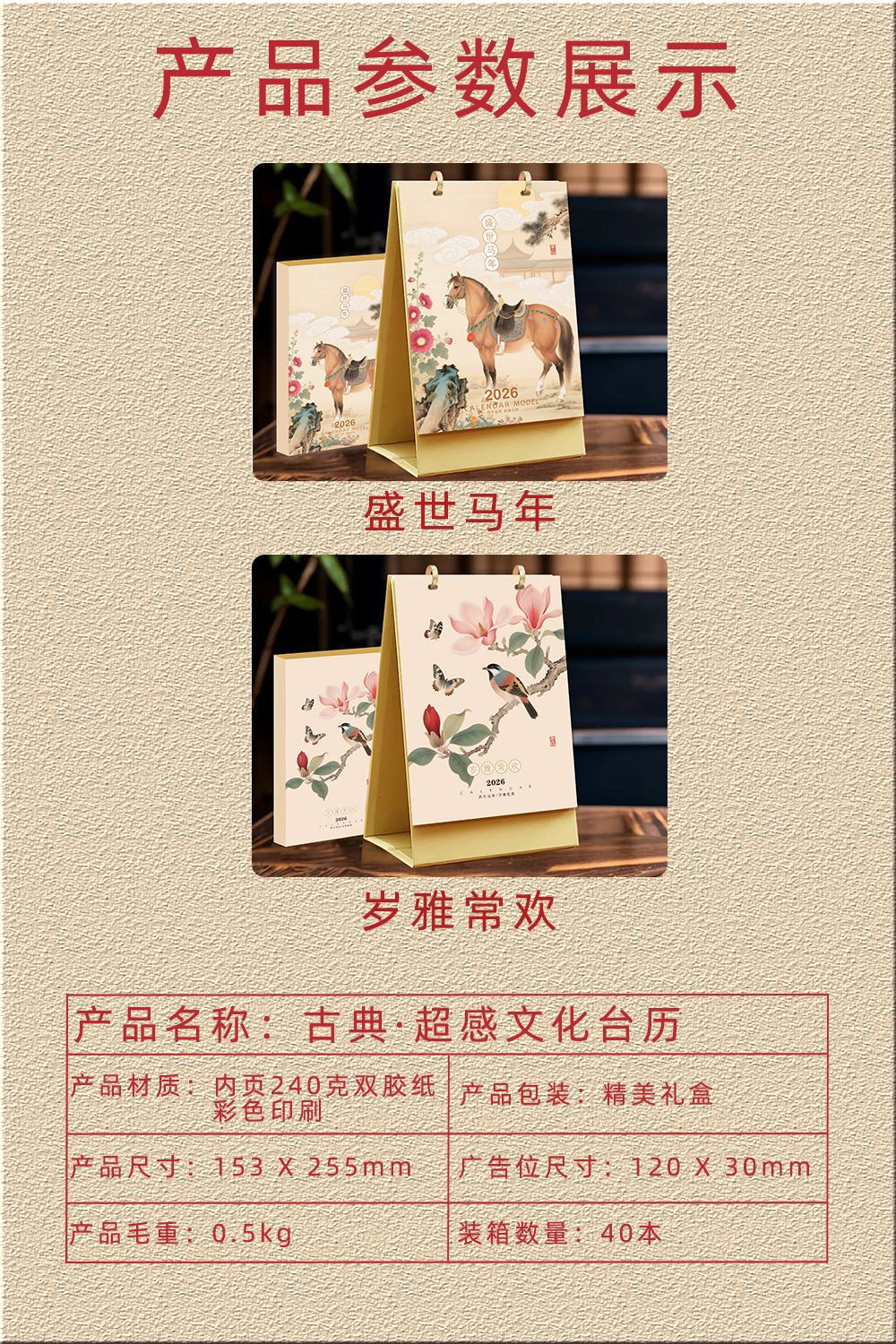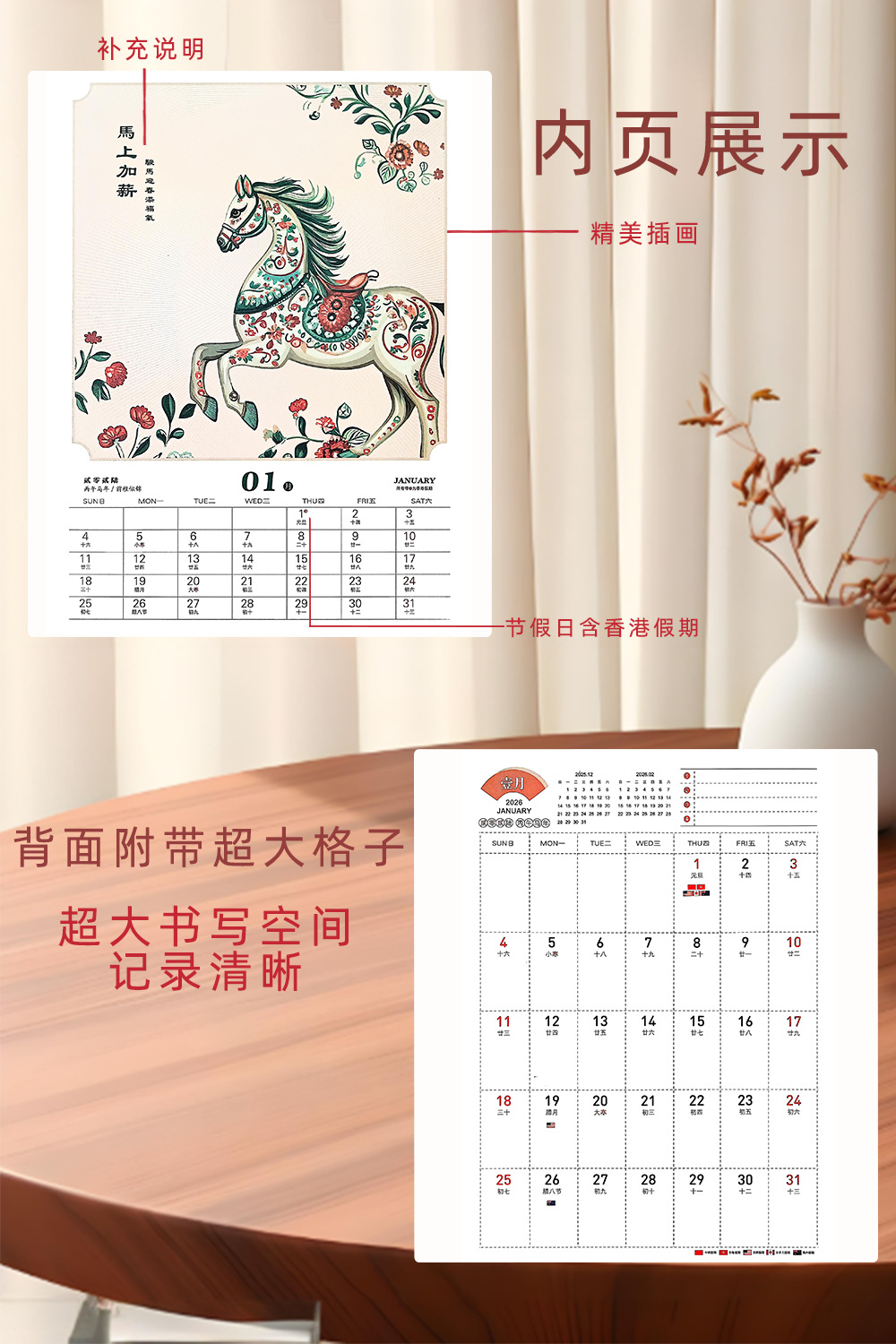 2026年馬年木製卓上カレンダー オフィス装飾 新型カレンダー シンプルでクリエイティブなデスクトップカレンダー 箔押しロゴ 広告卸売