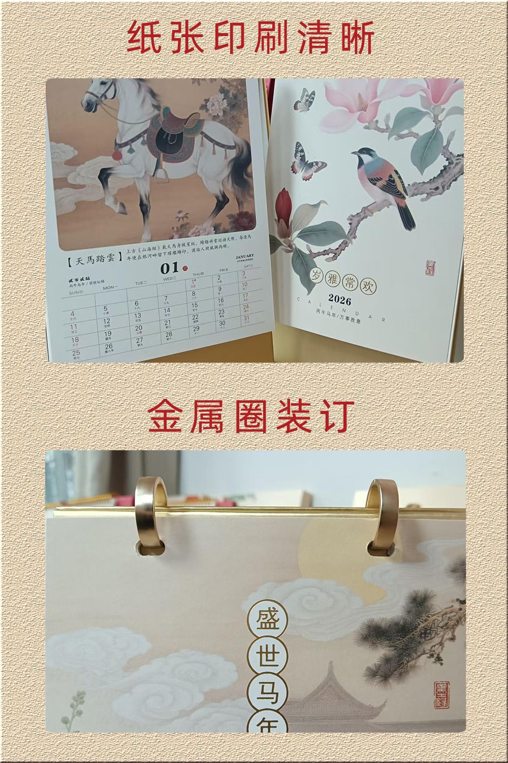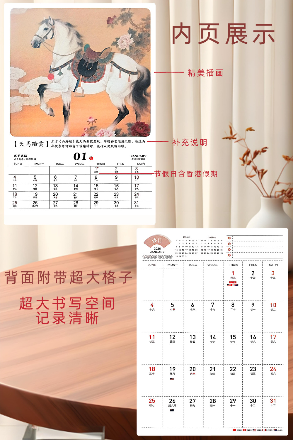 2026年馬年新作シルク布月間カレンダー 家庭用中国風カレンダー壁掛け絵画 室内装飾 福文字吊り下げ飾り 壁掛け