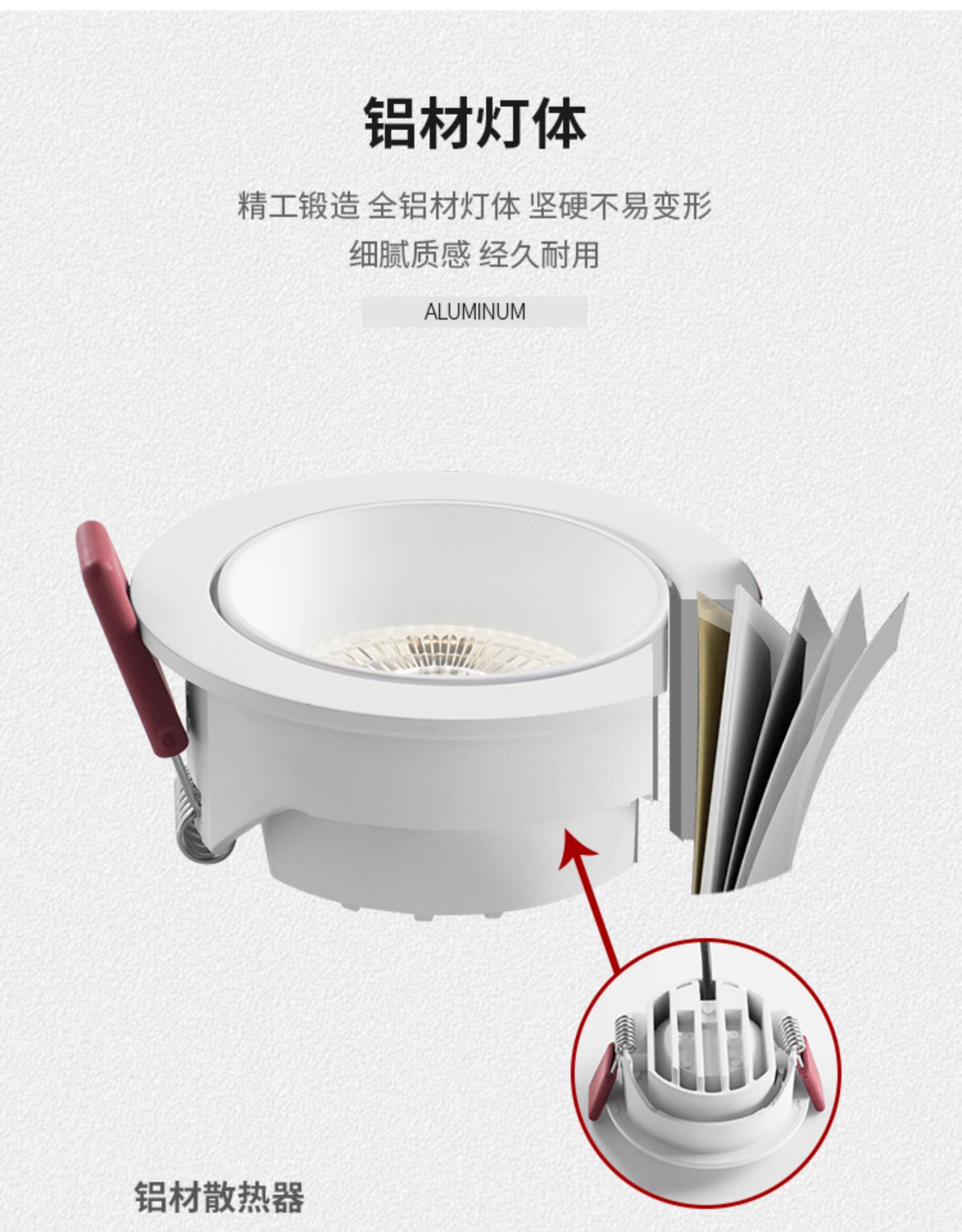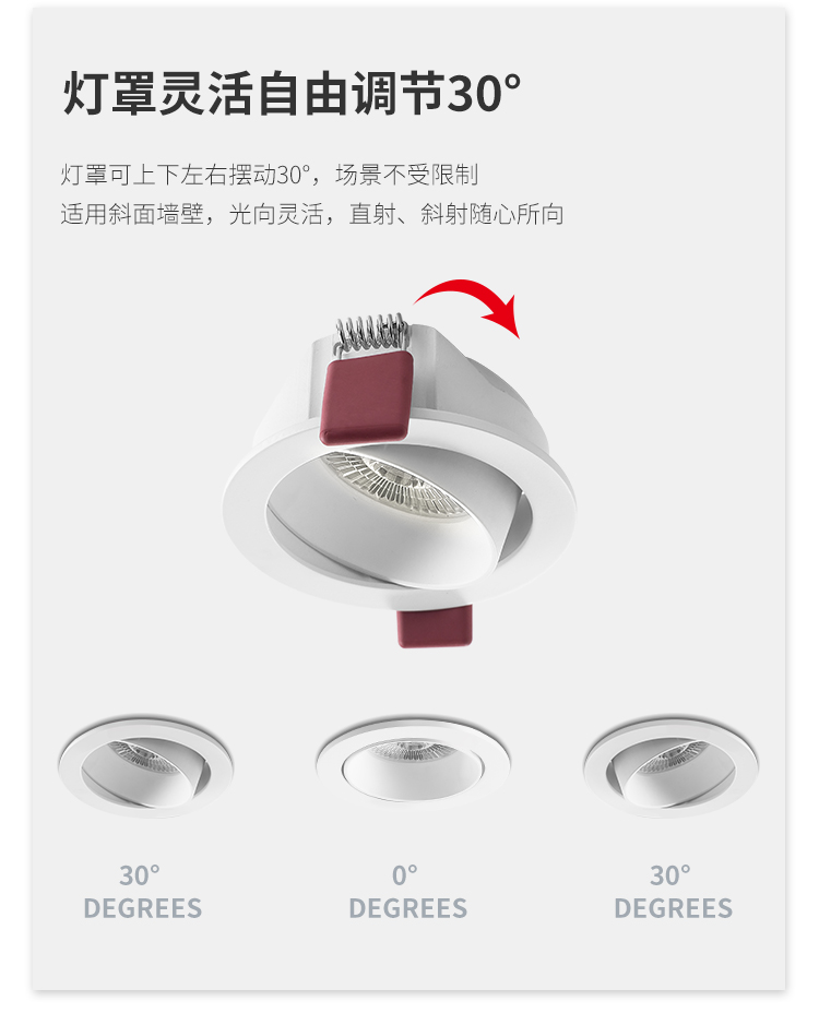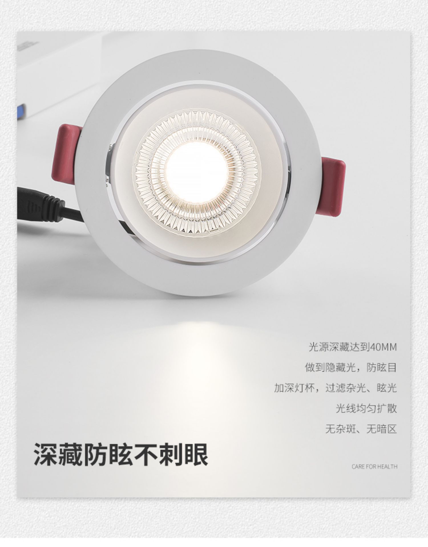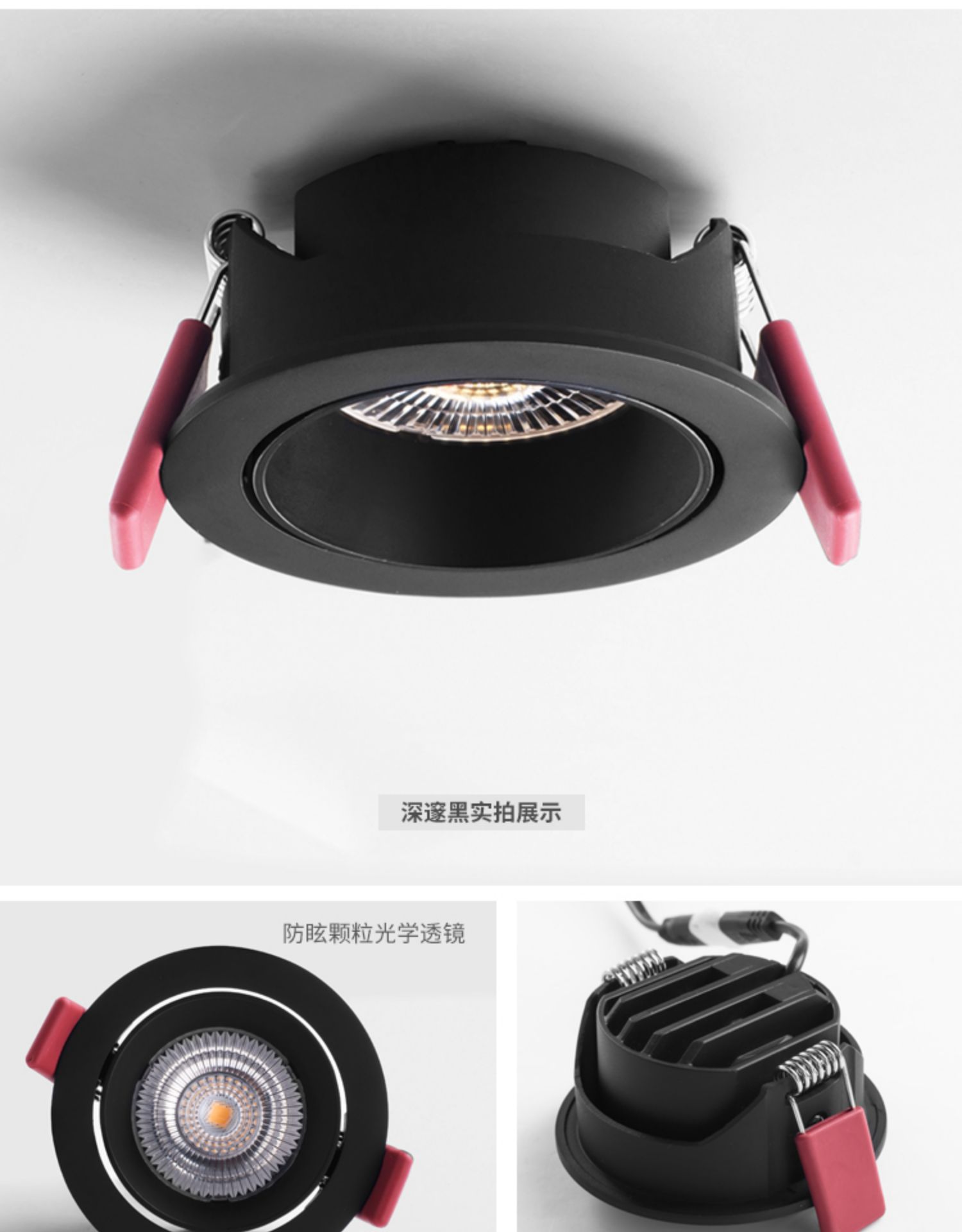 LEDグリルランプ三頭スポットライト豆胆ランプ埋め込み式商用斗胆ランプcob調節可能角度防眩度ダウンライト