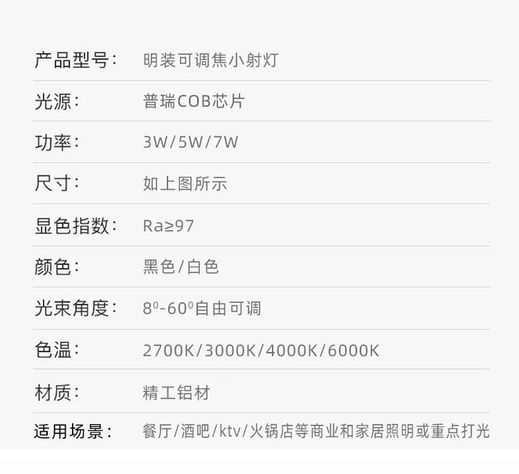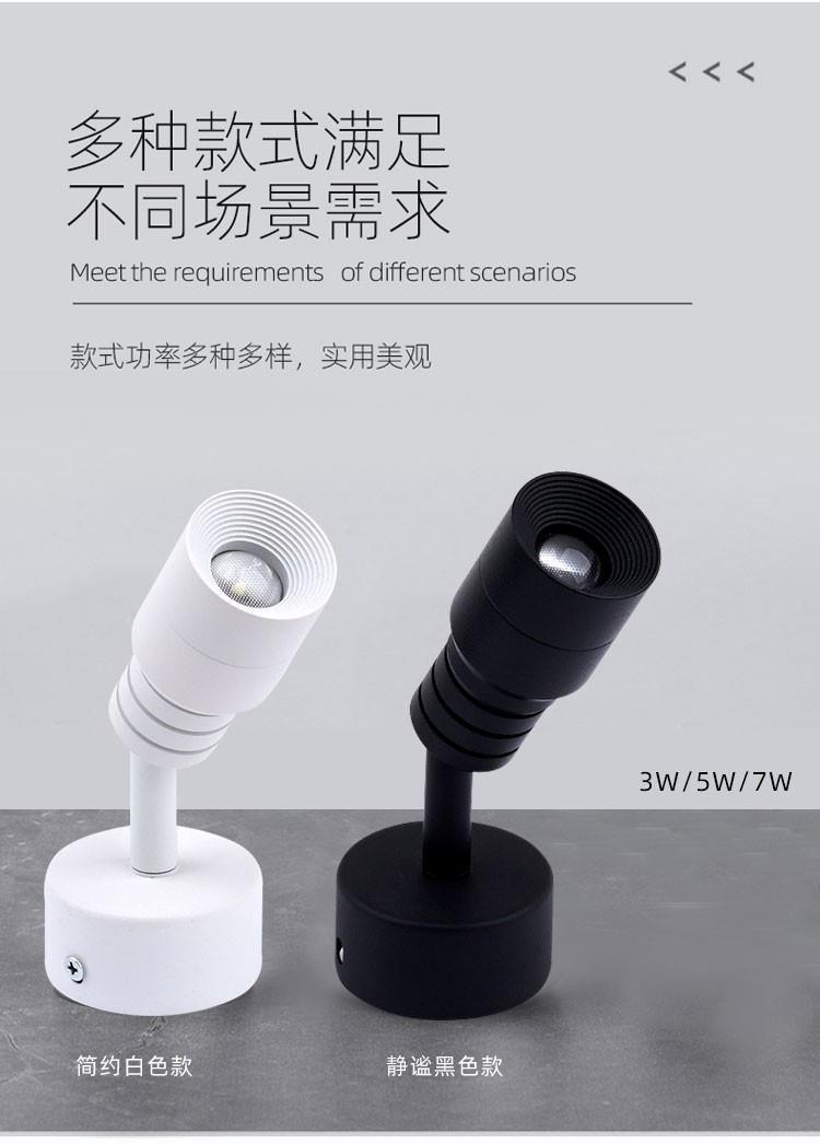 明装小スポットライトled天井3W5W7Wショールーム調整焦点集光テーブルバーレストラン雰囲気ランプ2700K
