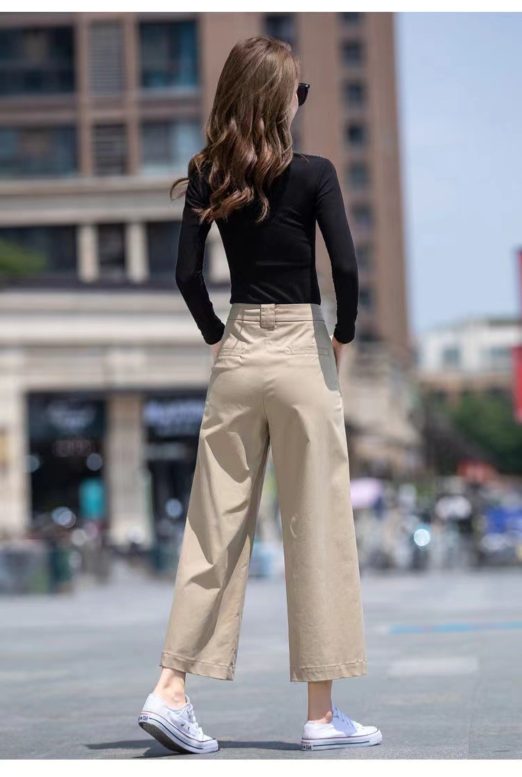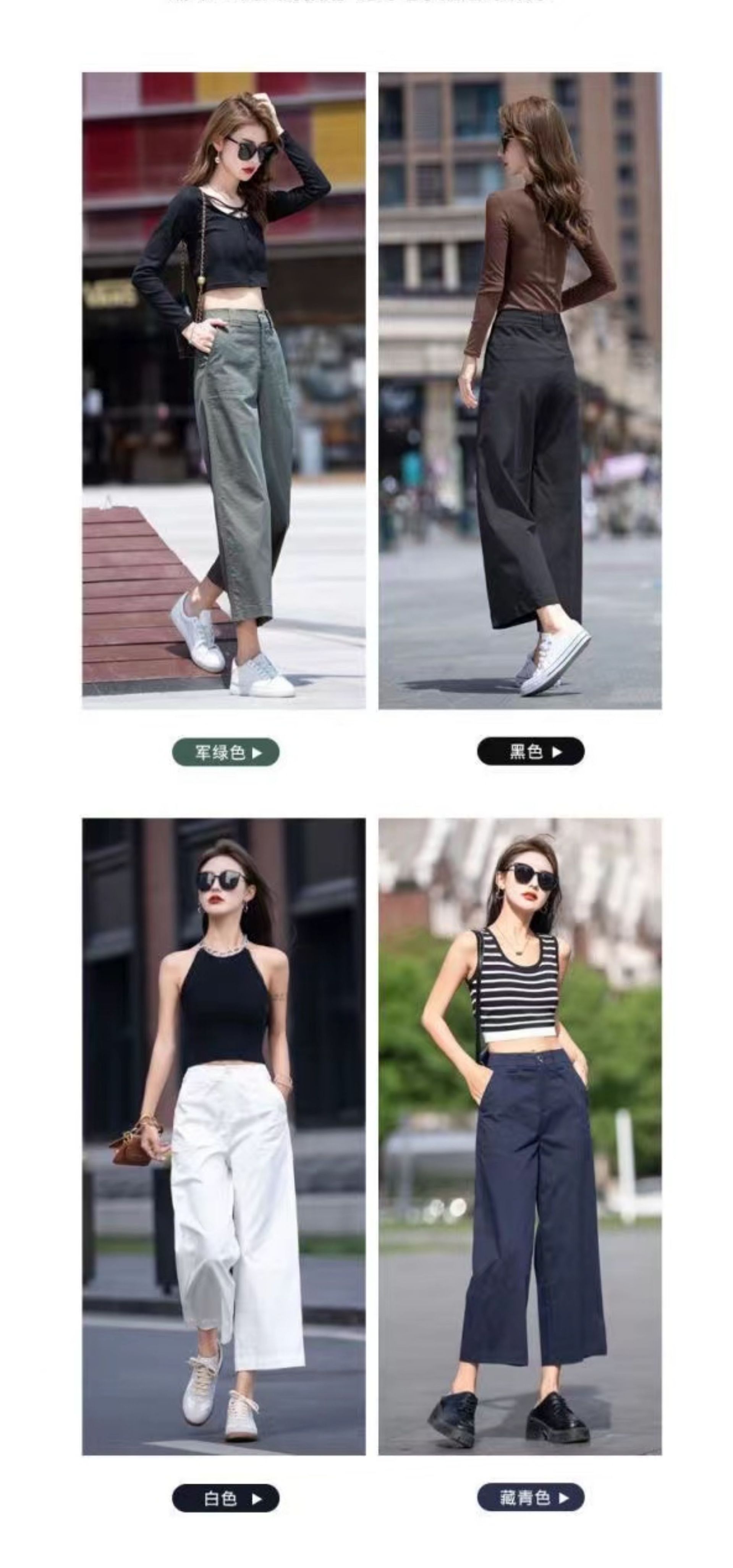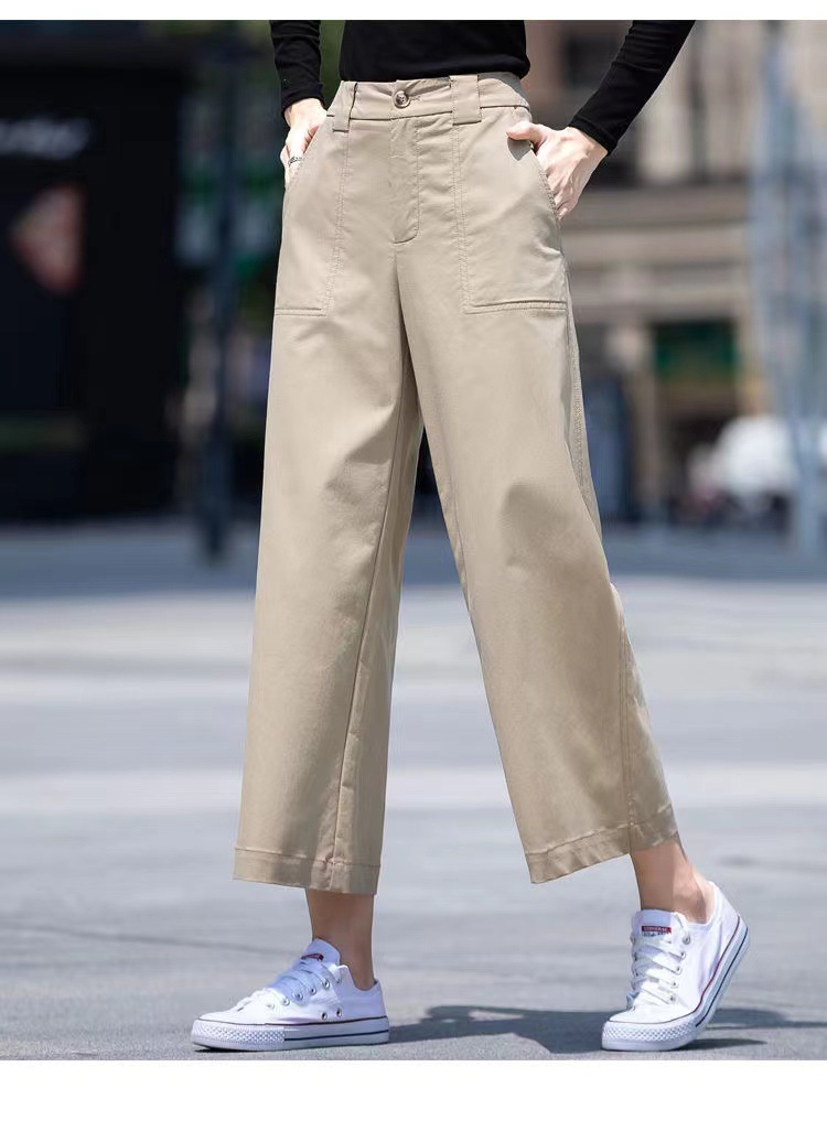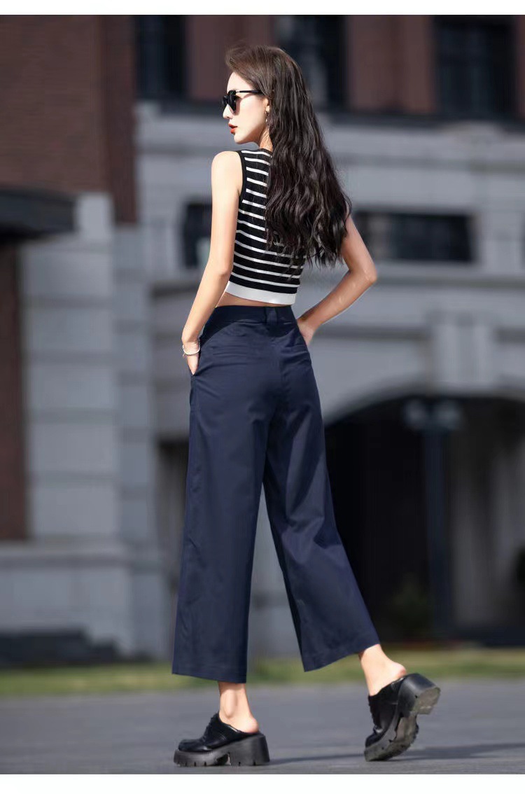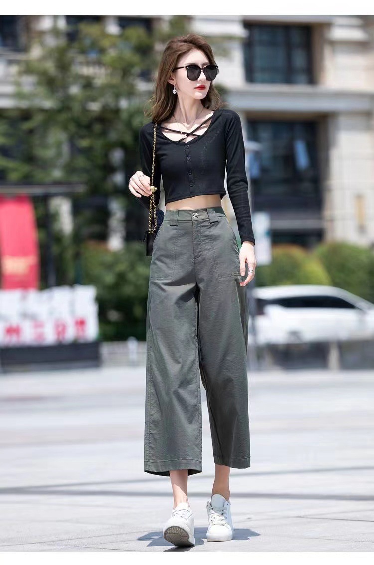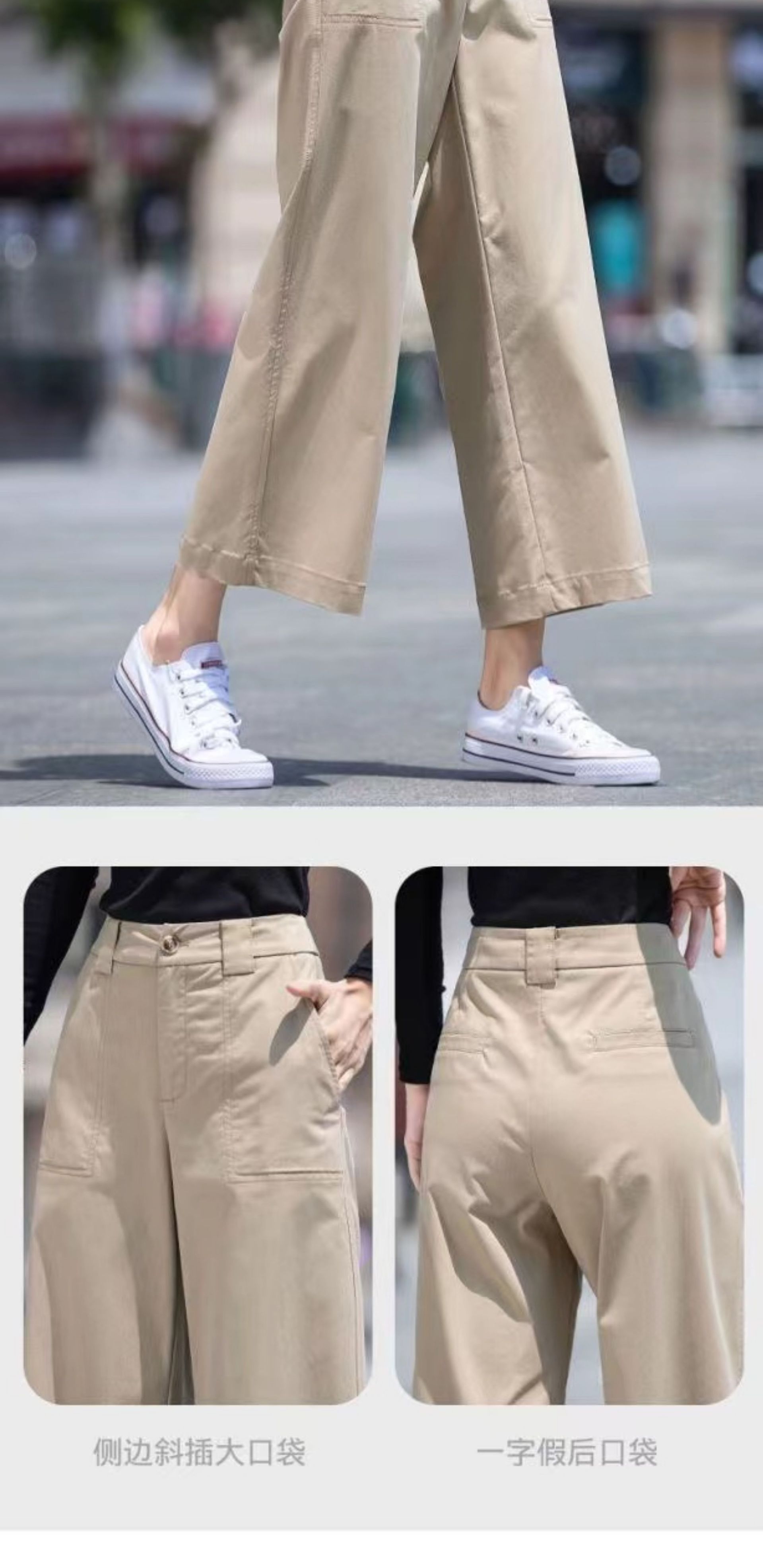 ズボンの女性の春秋の新型の2024の新型の天糸の広い足のカジュアルなズボンの綿の小さい背の高級な8分の9分のズボン