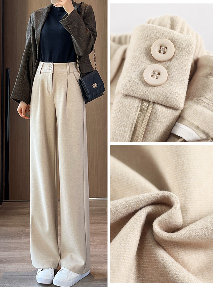 加绒毛呢阔腿裤女秋冬新款直筒宽松高腰冬季休闲裤加厚裤子女