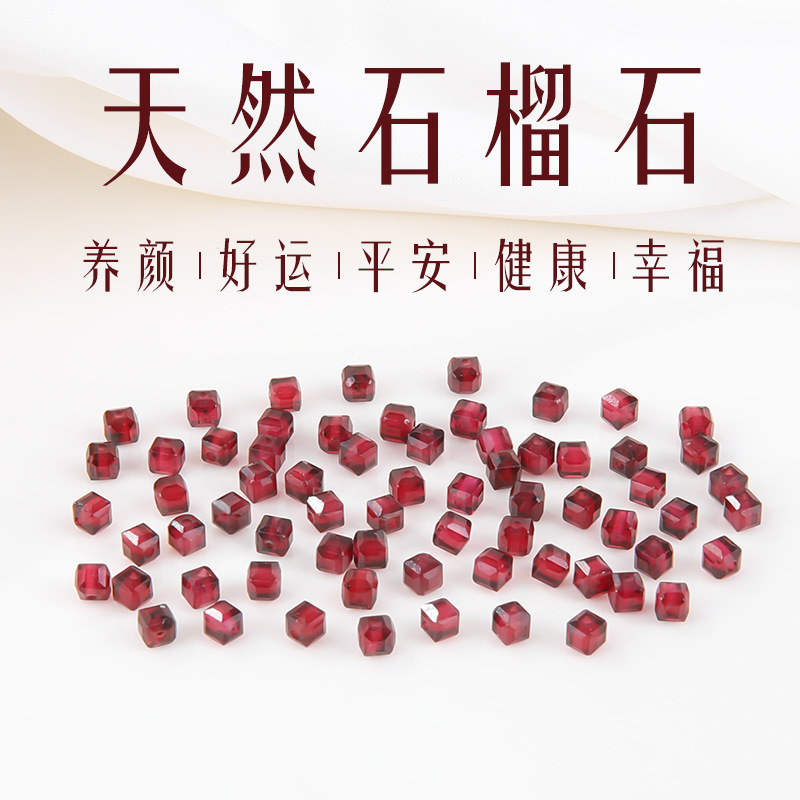 3mm天然石榴石散珠diy手串串珠项链配件配珠方糖切面珠水晶珠子